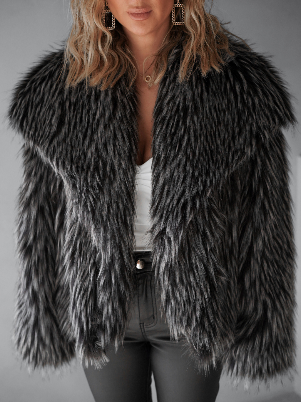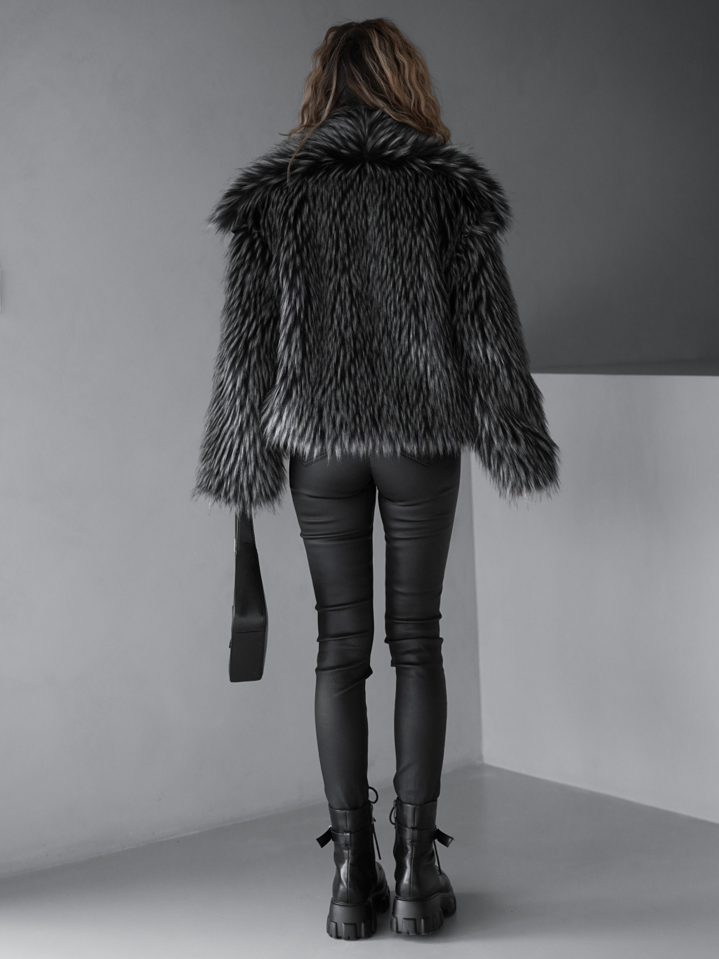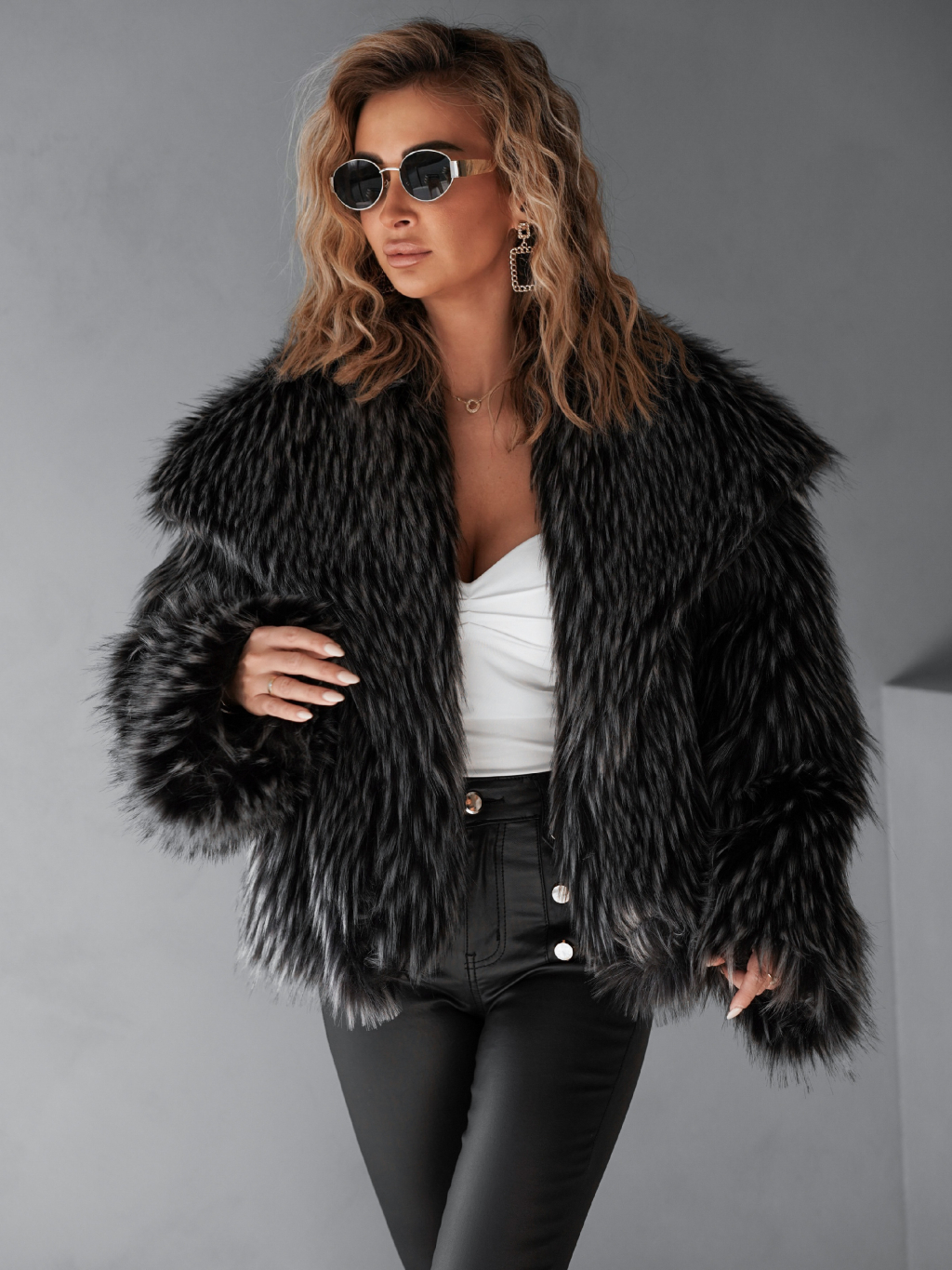 Černý žíhaný faux fur kožešinový kabátek ORLOS