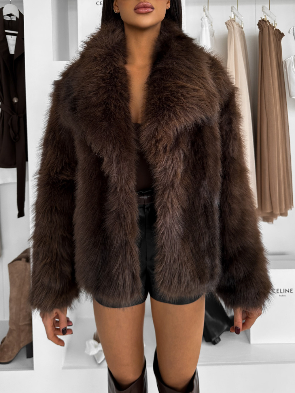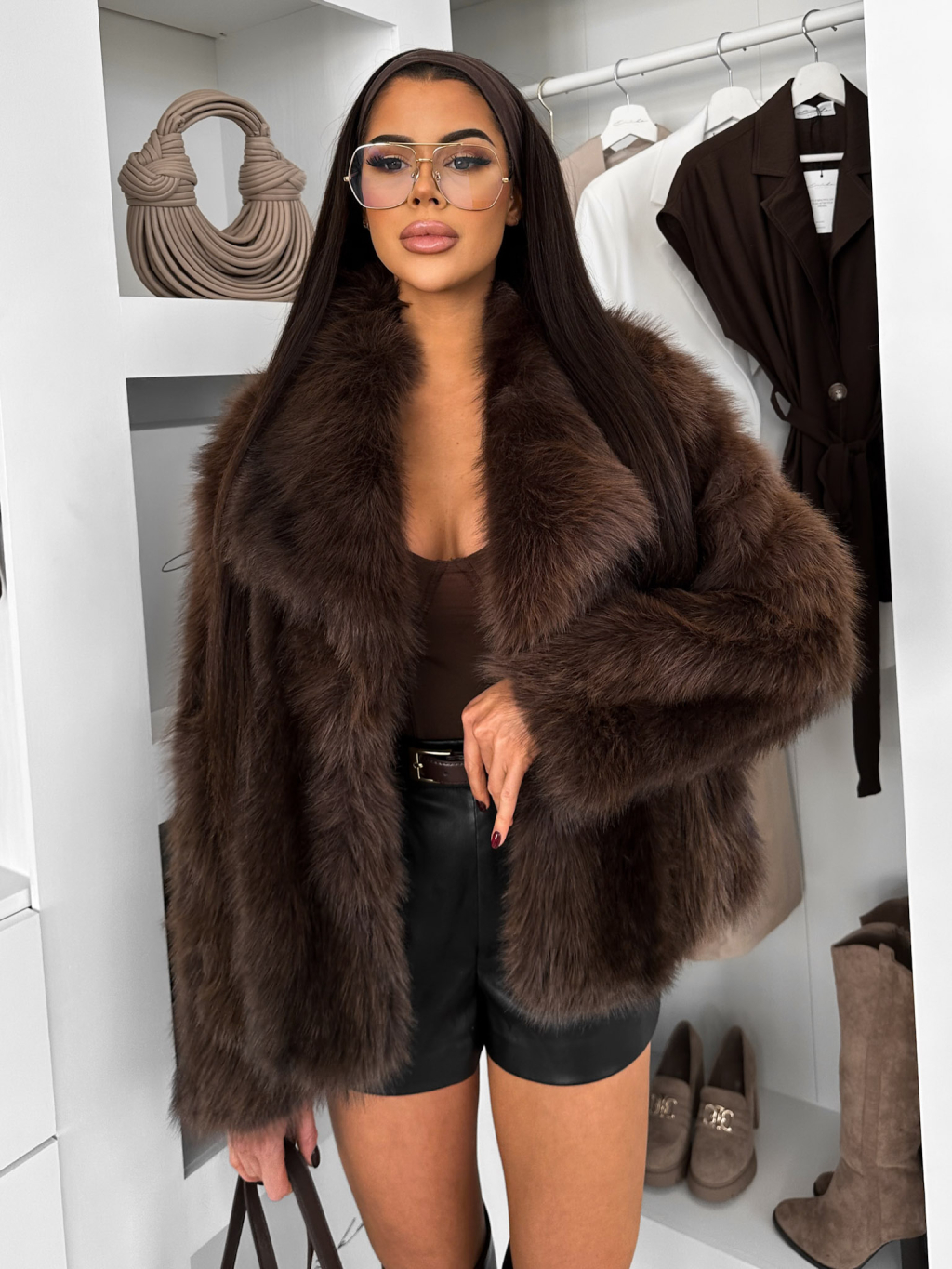Hnědý faux fur kožešinový krátký kabátek AZHARI