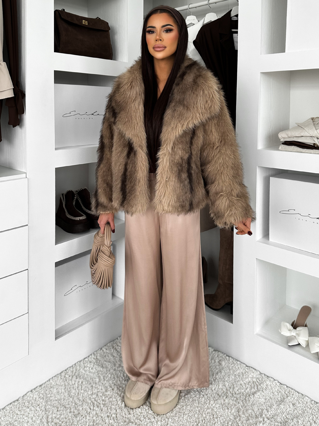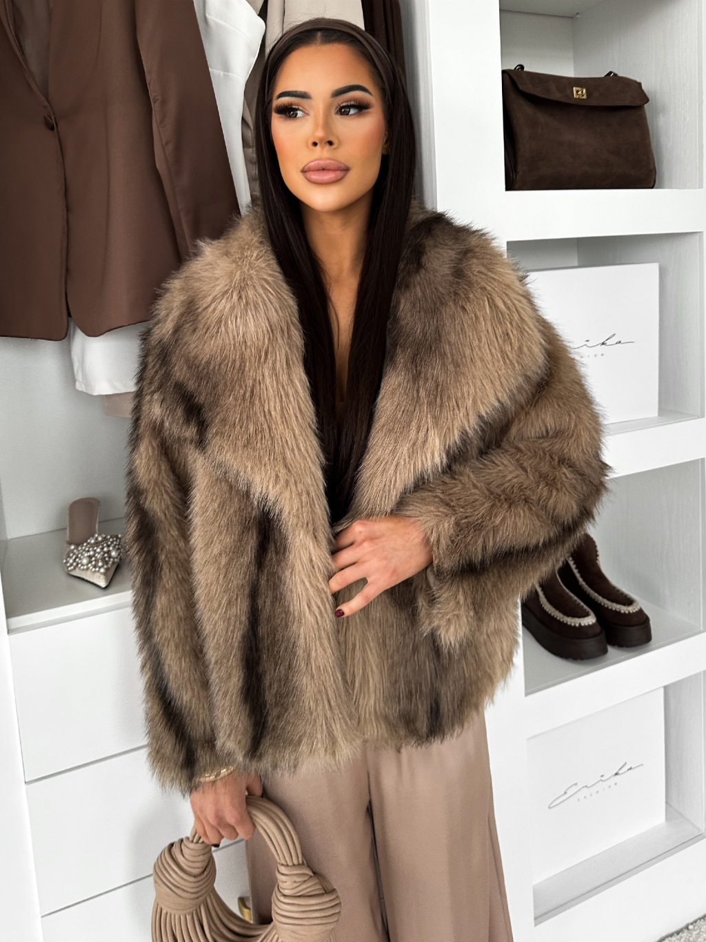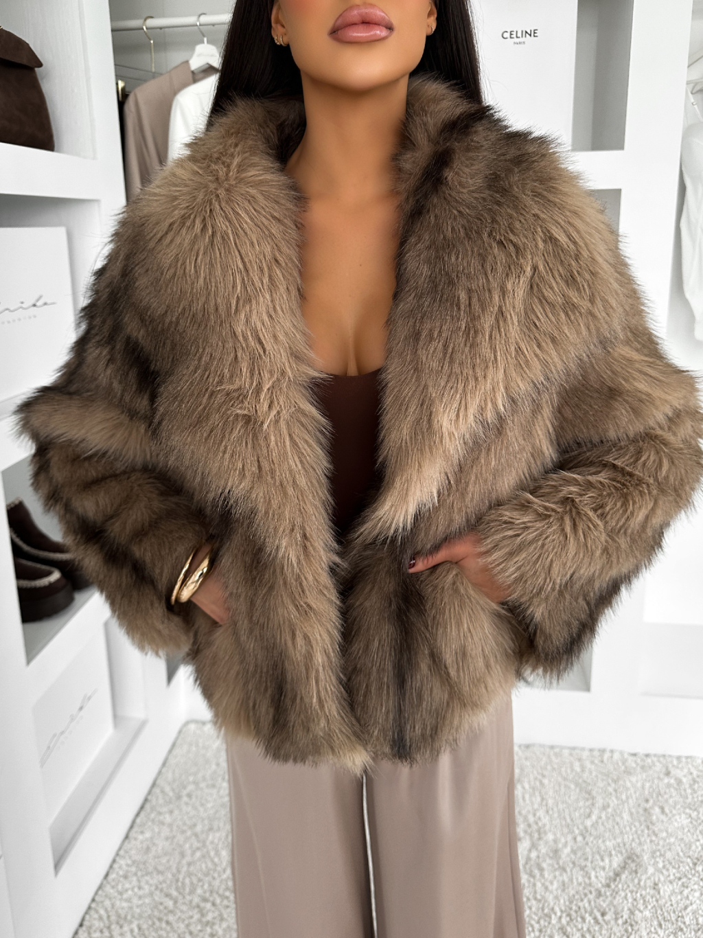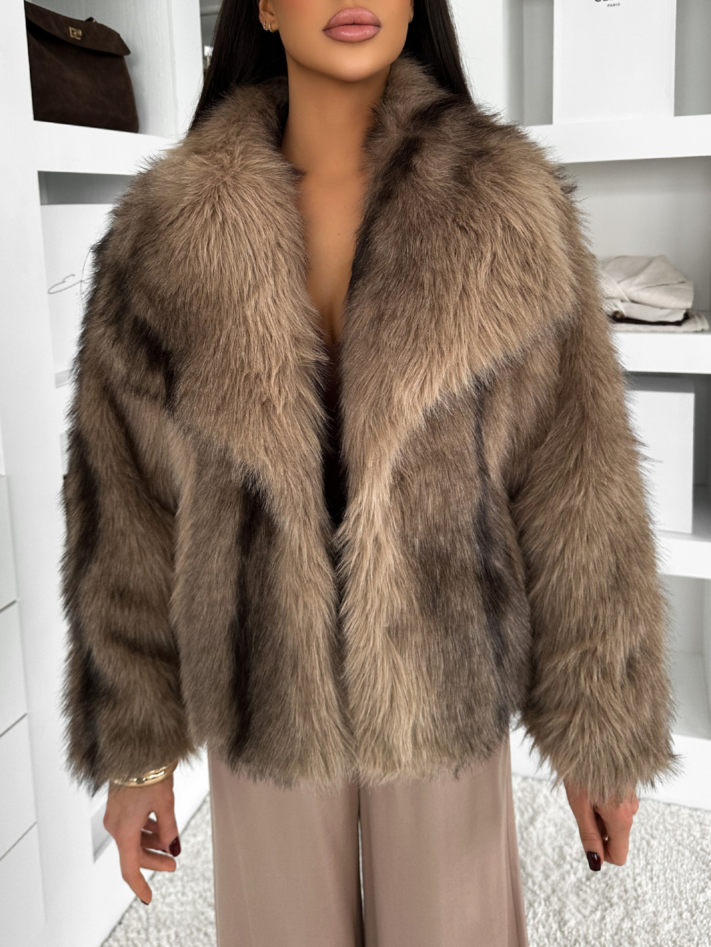 Hnědý kožešinový krátký kabátek CAVONTE