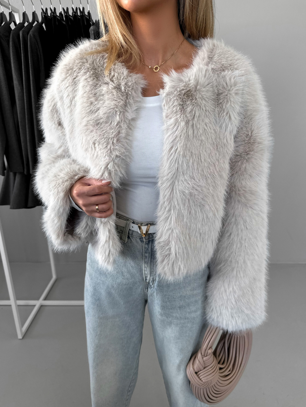 Krémový krátký faux fur kožešinový kabátek ANNELIT