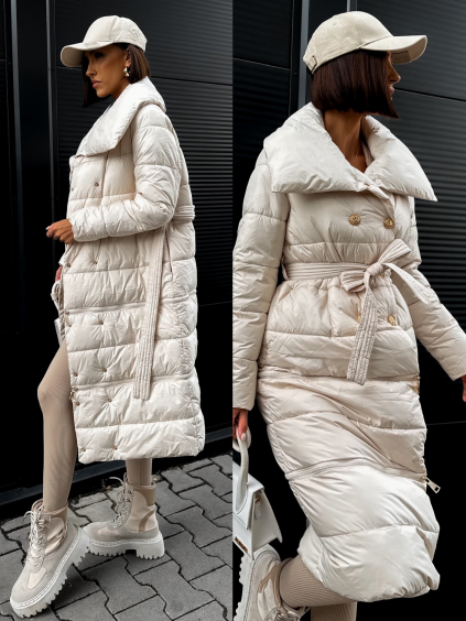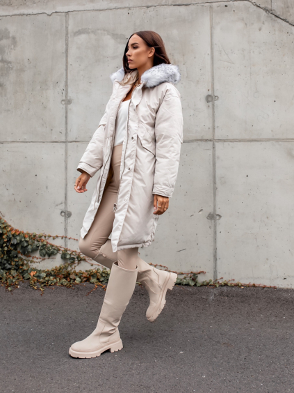 Béžová dlouhá prošívaná zimní bunda TAREVO s kožíškem