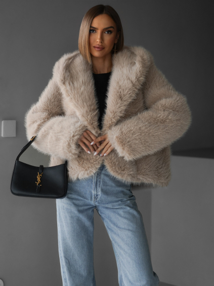 Béžový krátký faux fur kožešinový kabátek NIKALO