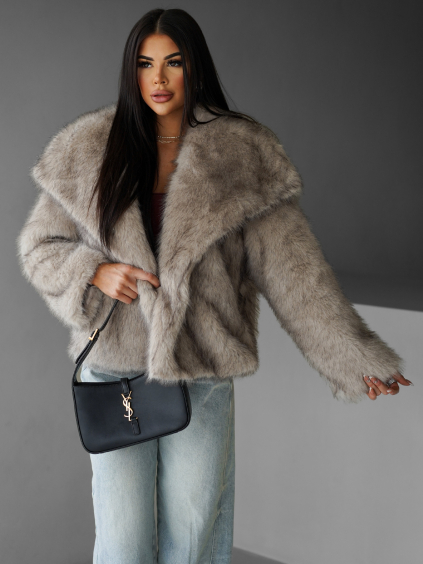Béžový faux fur krátký kožešinový kabátek TUYEN