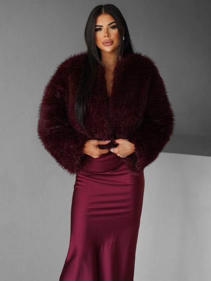 Vínový faux fur krátký kožešinový kabátek KOLODA