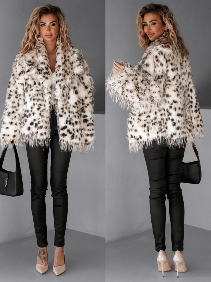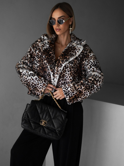 Leopardí faux fur kožešinový krátký kabátek NIALLY