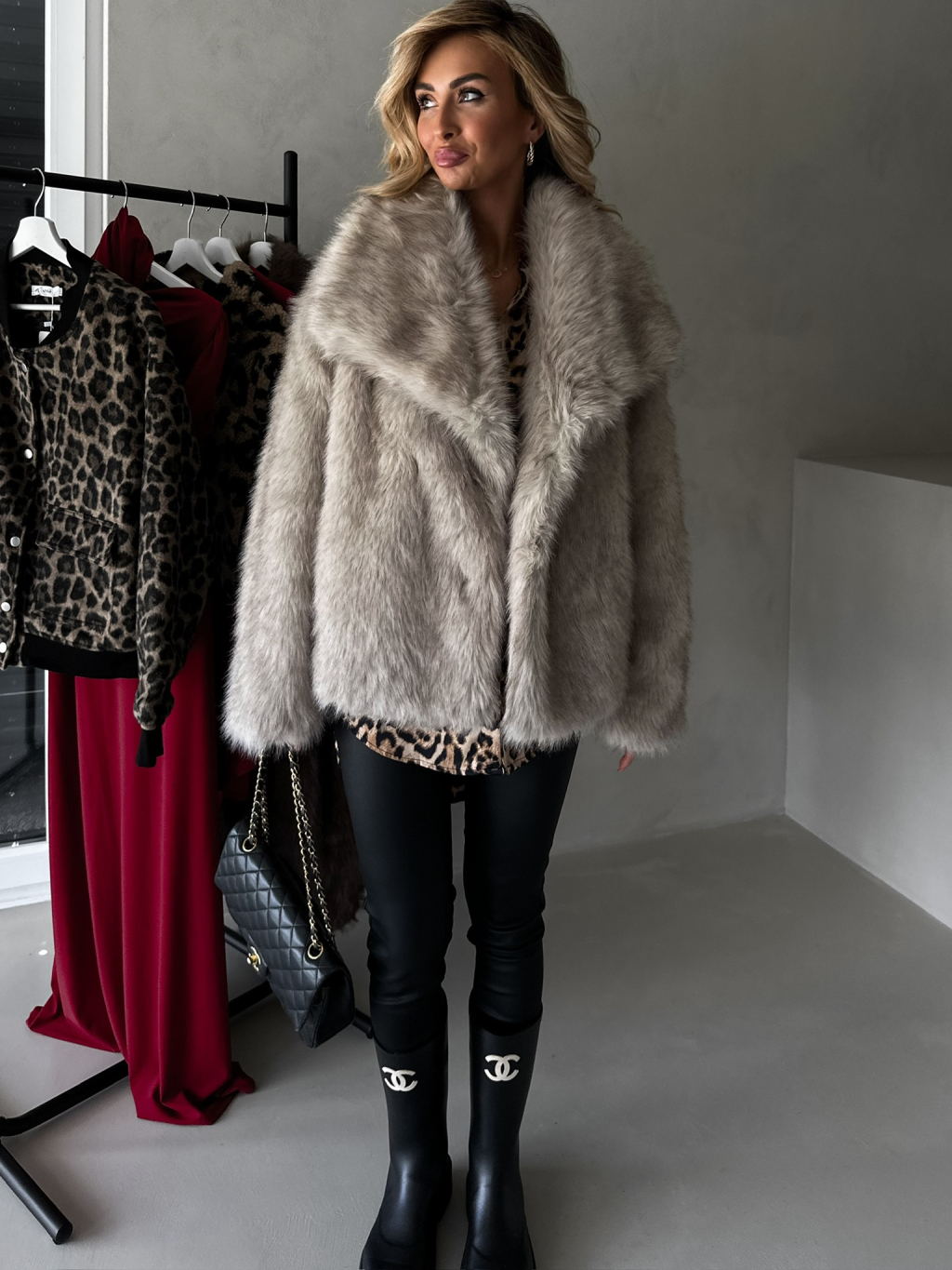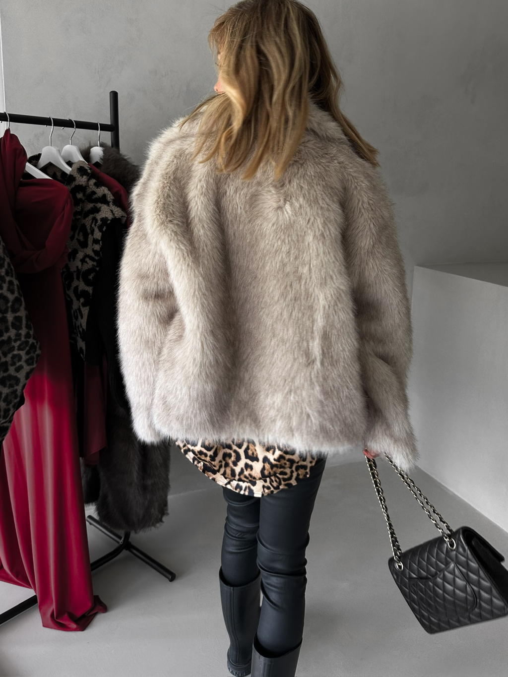 Béžový krátký fauxfur kožešinový kabátek KIRIAK
