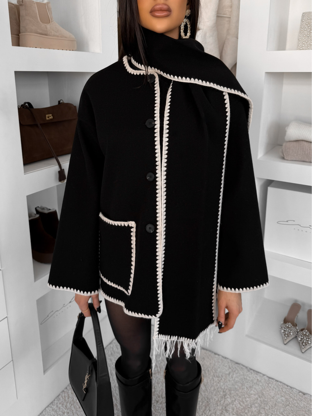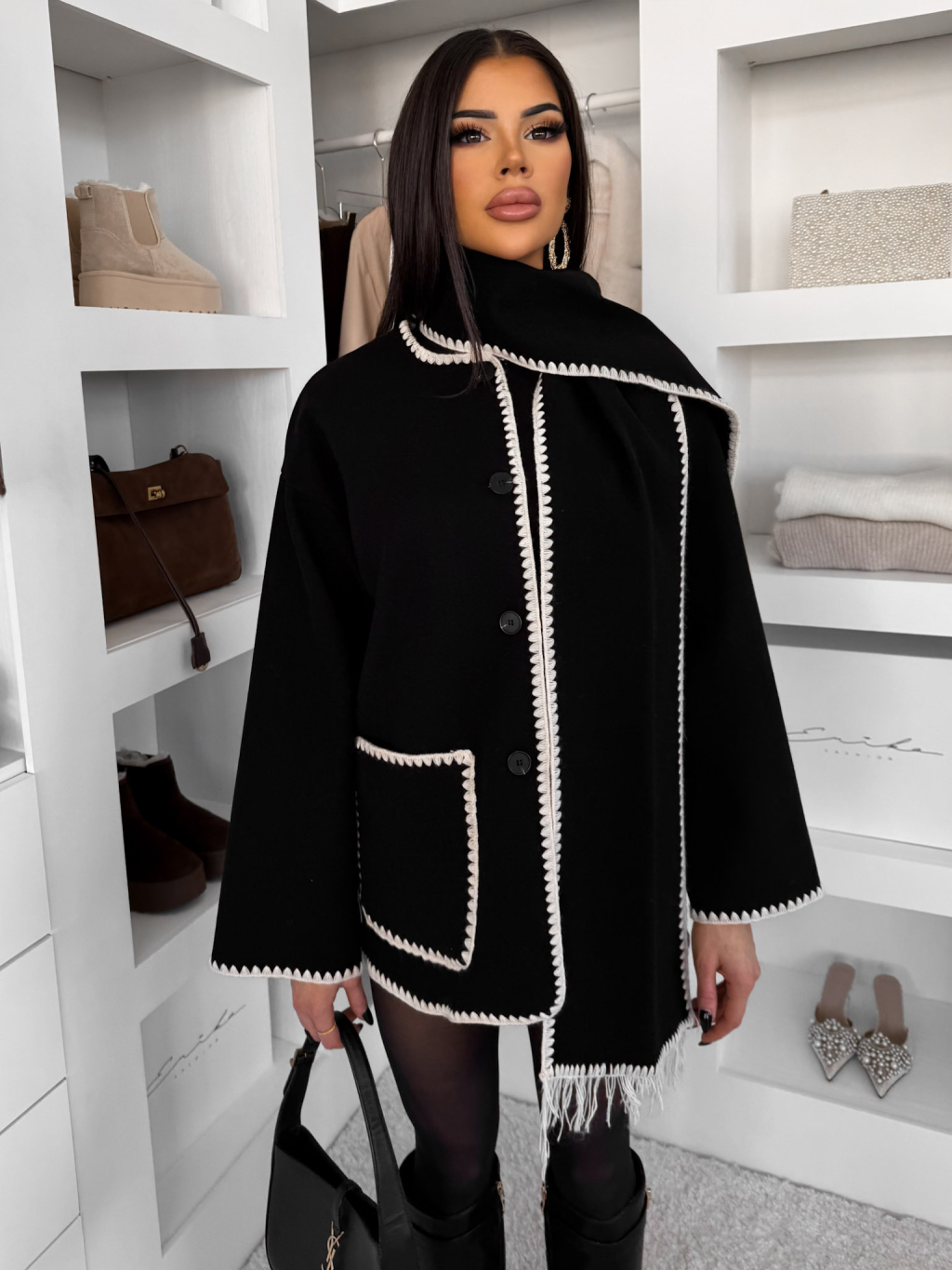 Černý cardigan ROKANU se šálou