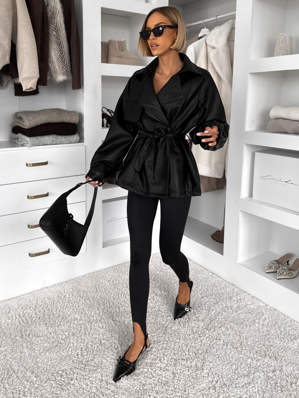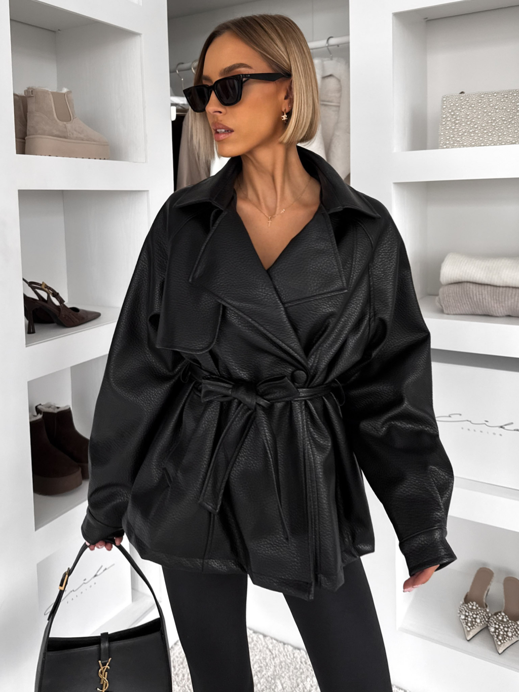 Černý koženkový krátký kabátek SVELTE