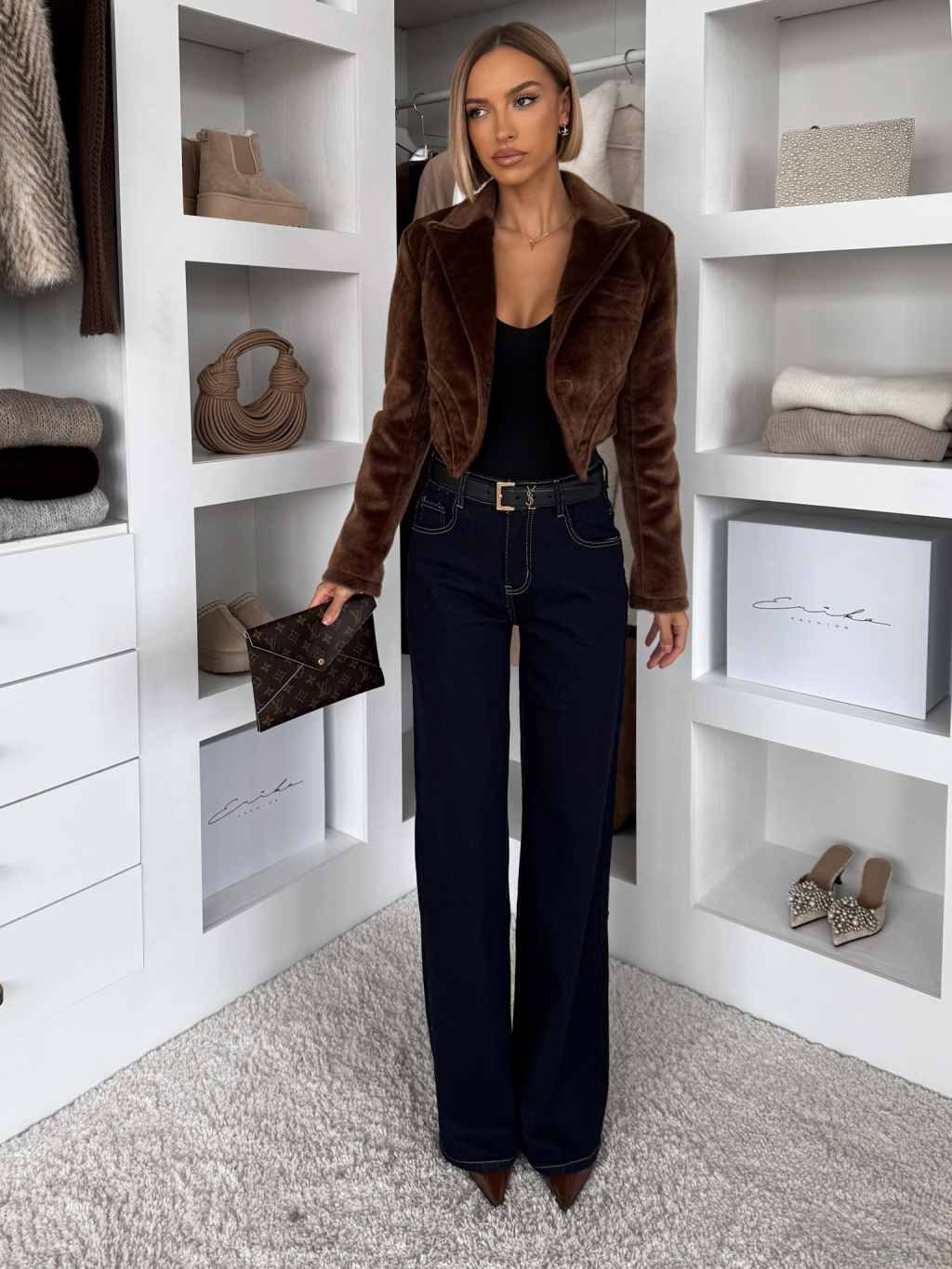 Hnědý luxusní semišový elegantní krátký kabátek DRIFER