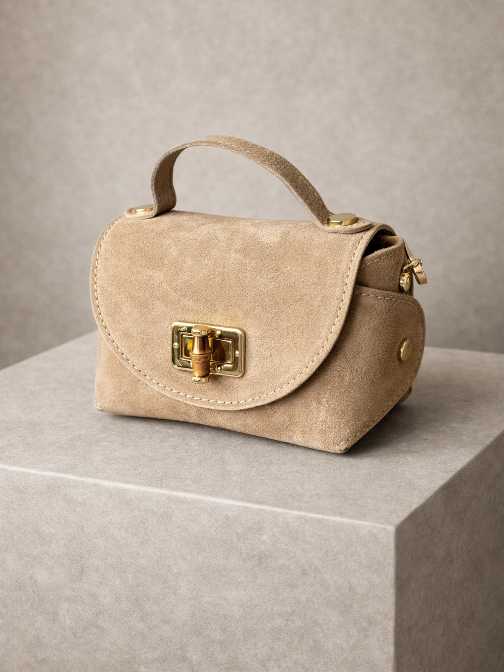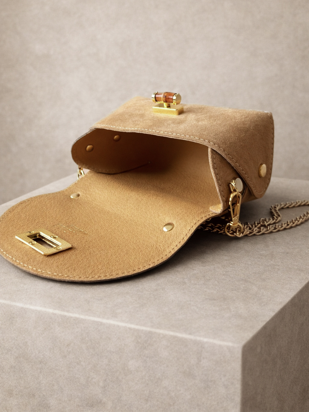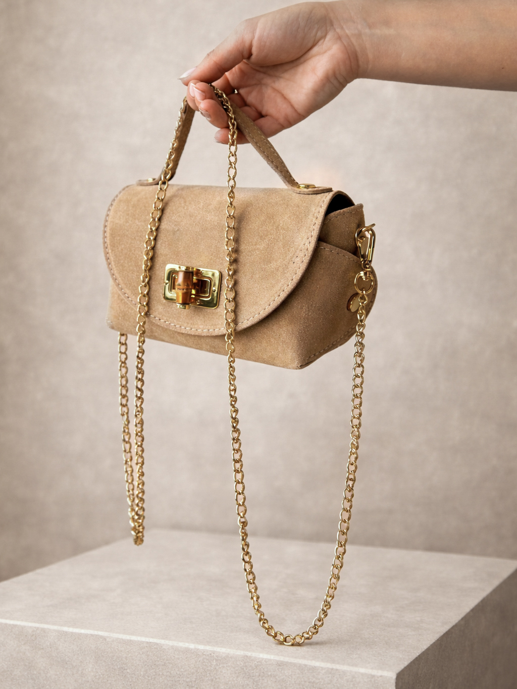 Krémová kožená semišová kabelka VEVAROQ se zlatým řetízkem