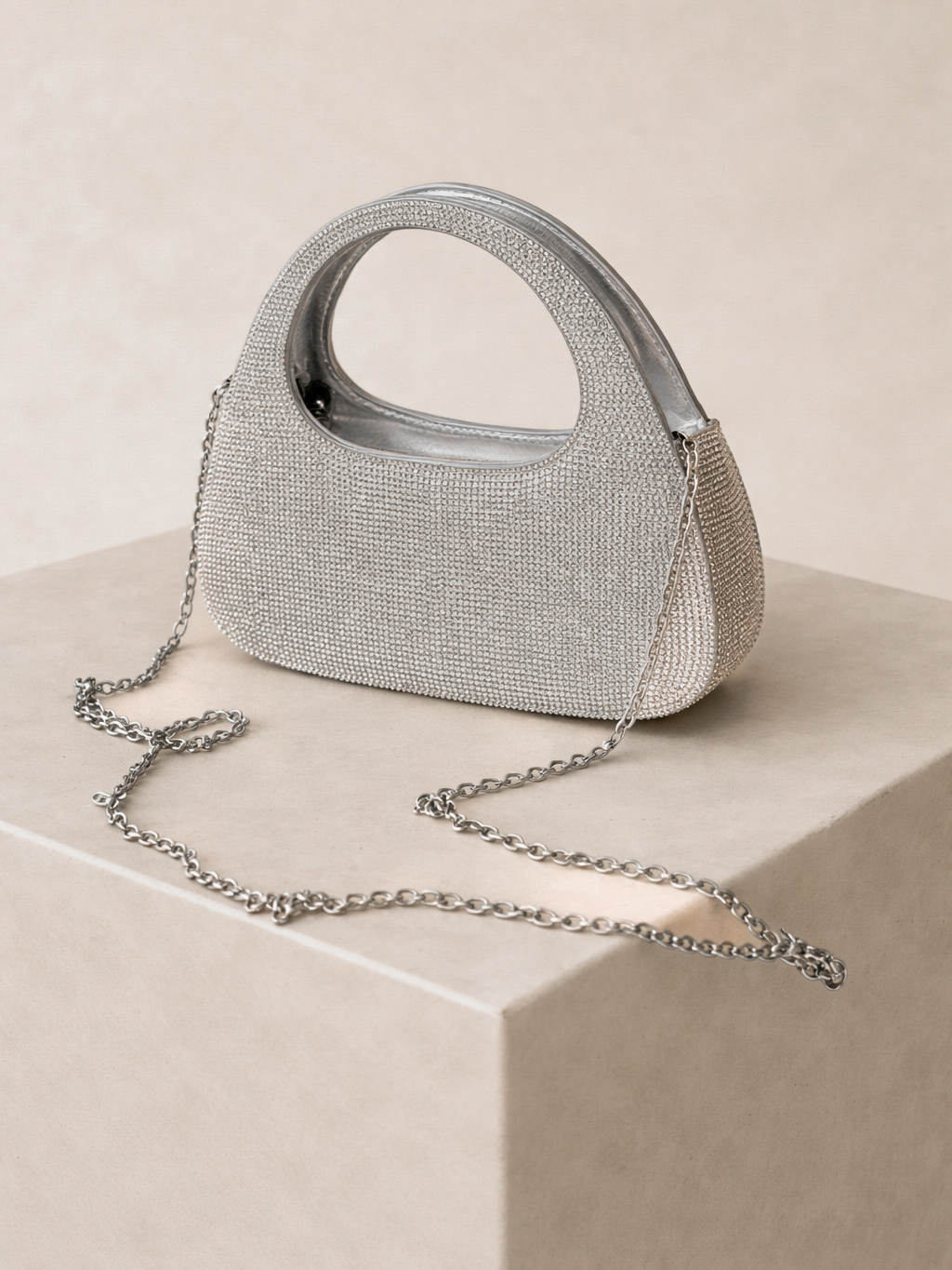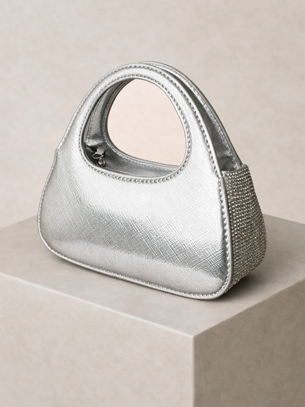 Stříbrná třpytivá mini plesová kabelka HALIMOR