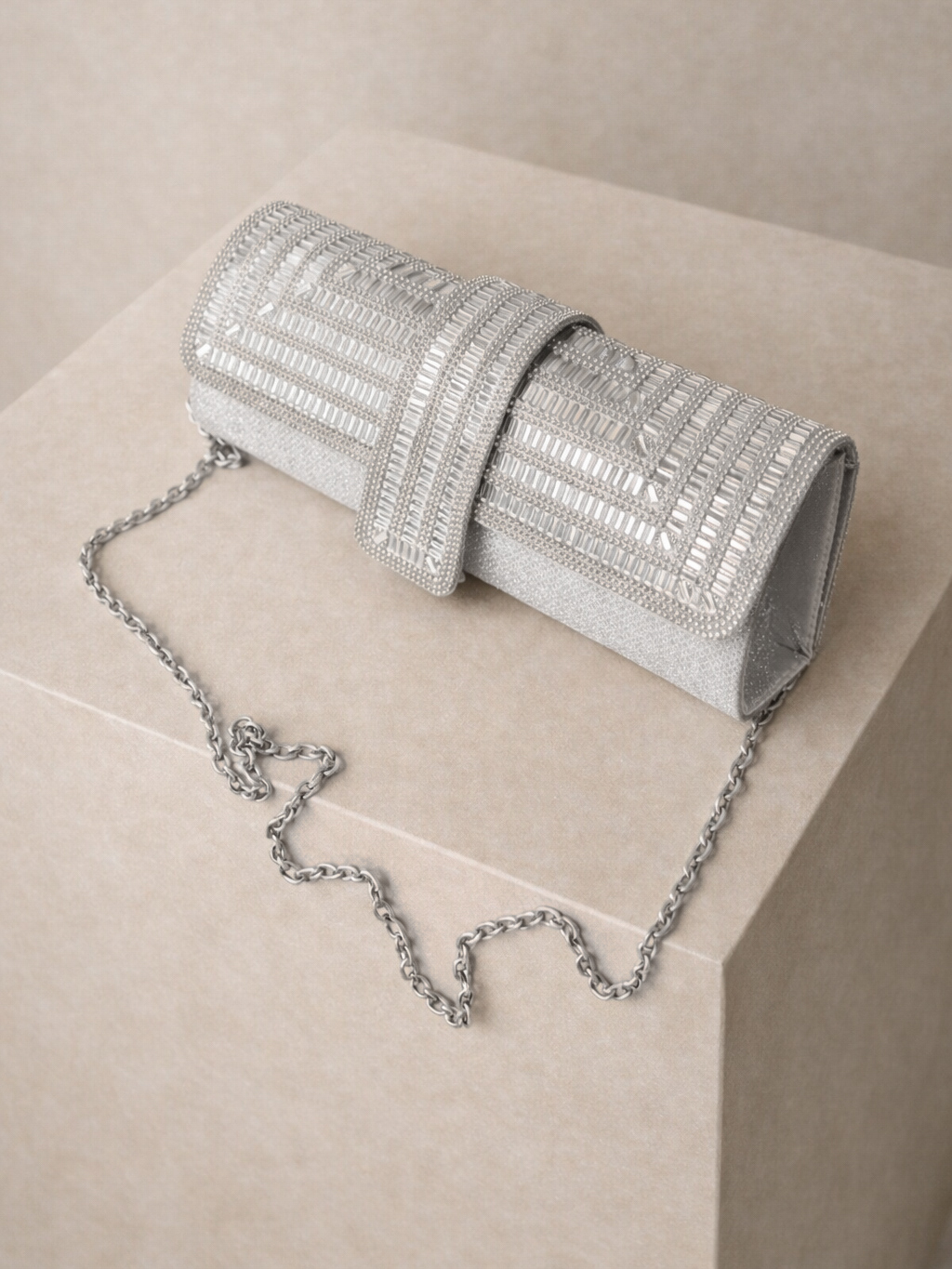 Stříbrné třpytivé psaníčko CARIVEN s kamínky