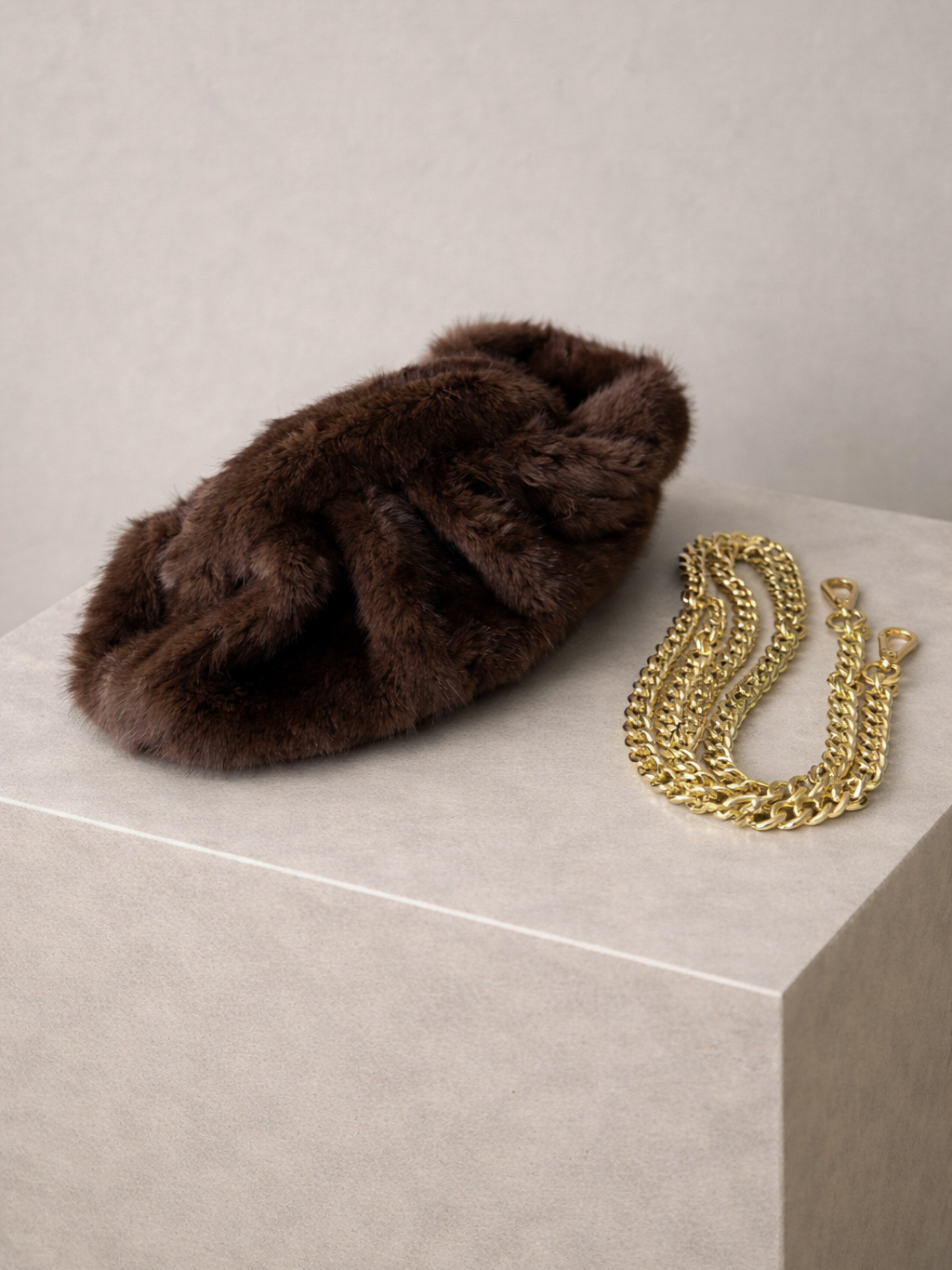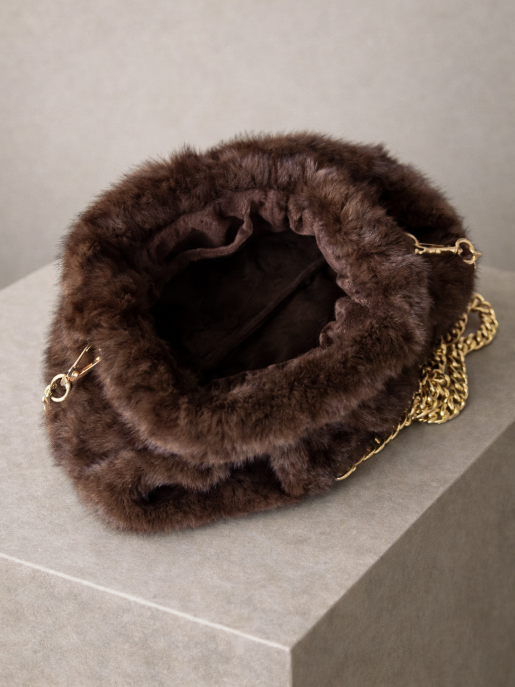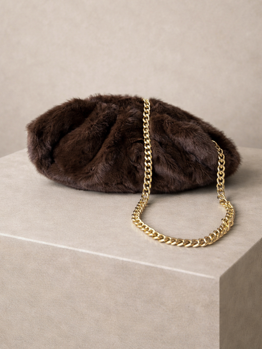 Tmavě hnědá plyšová kabelka WESINTI