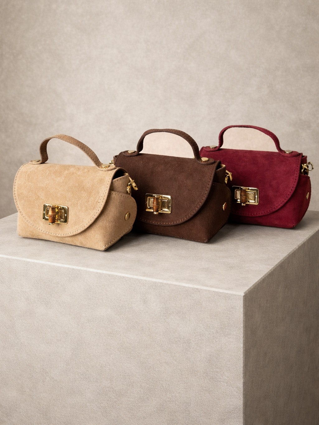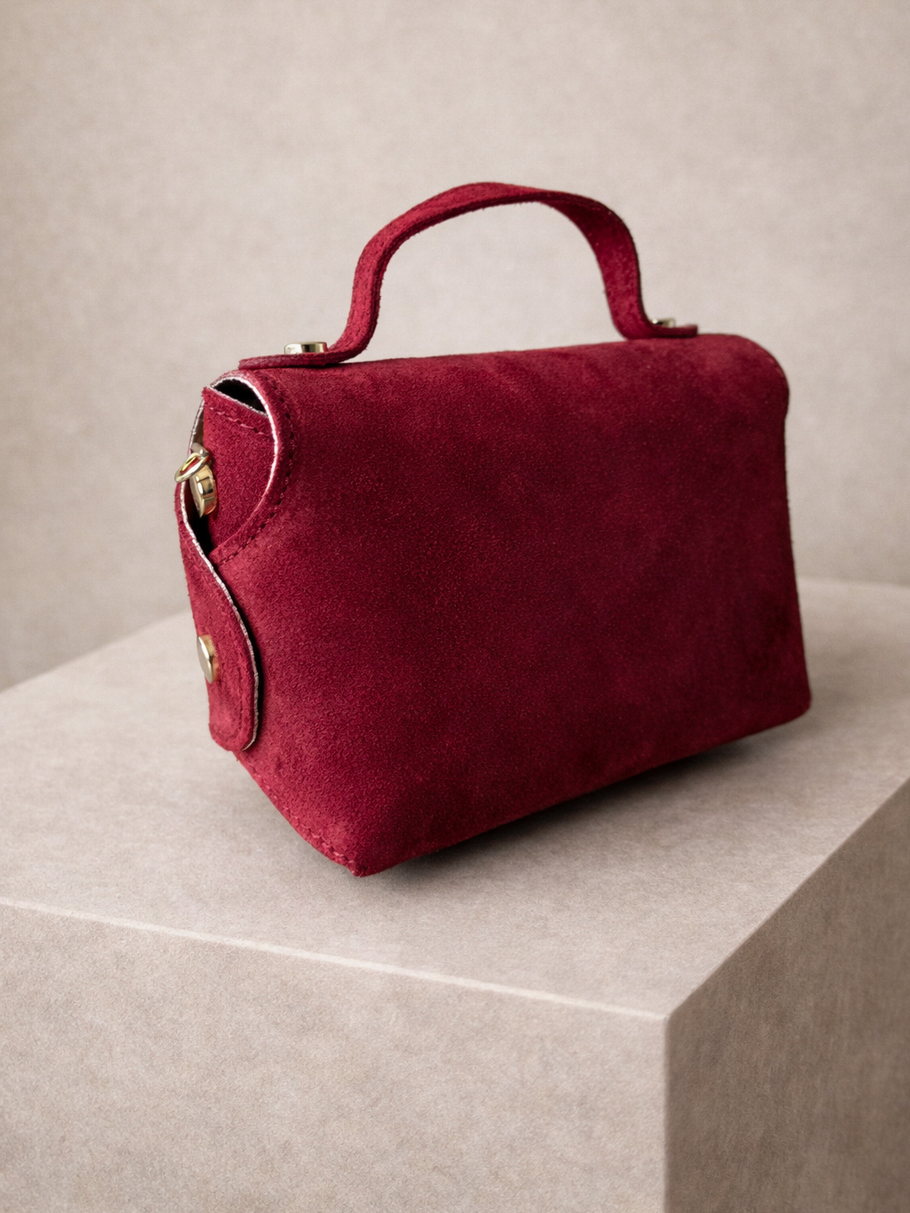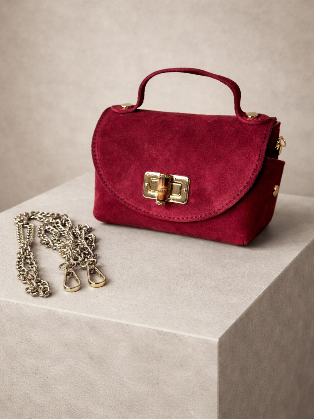 Vínová kožená semišová kabelka VEVAROQ se zlatým řetízkem