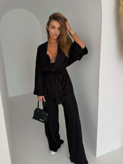 Tmavě hnědý 100% len kimono komplet ROSELLE