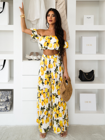 Zelený vzorovaný letní kalhotový komplet SERAPHY
