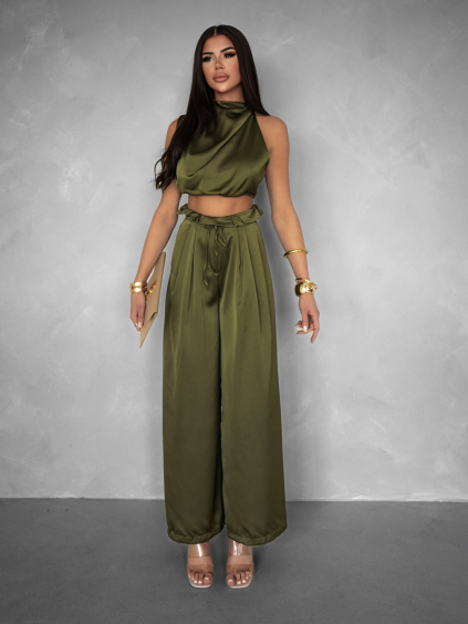 Zelený vzorovaný letní kalhotový komplet SERAPHY