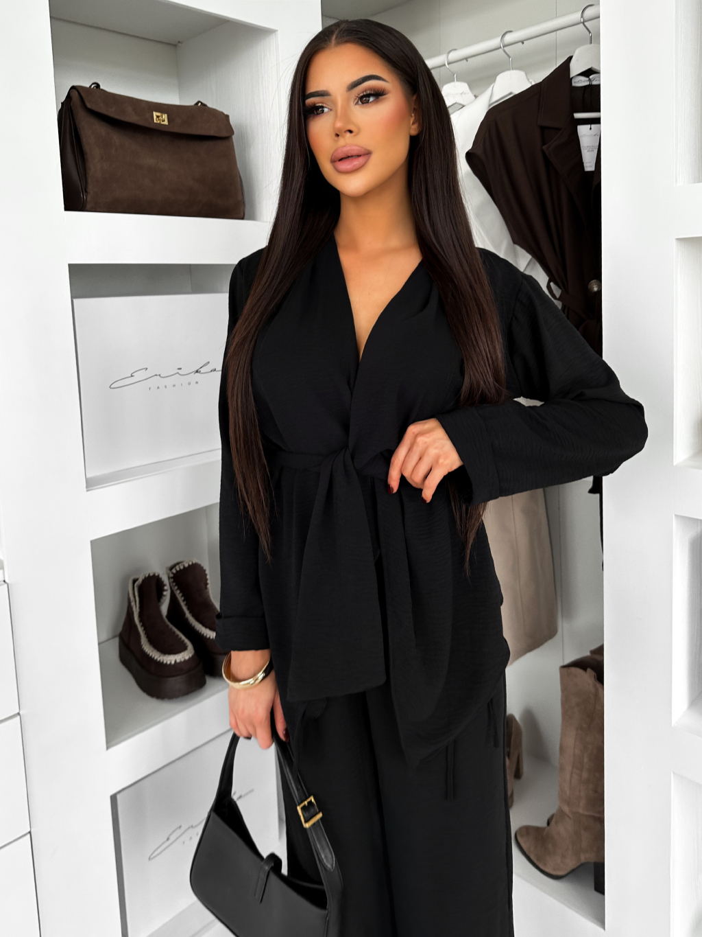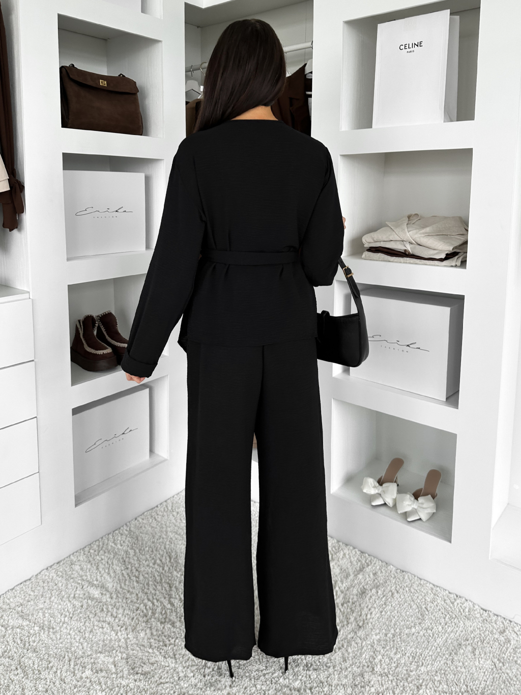 Černý volný kalhotový kostýmek KLAVONIX