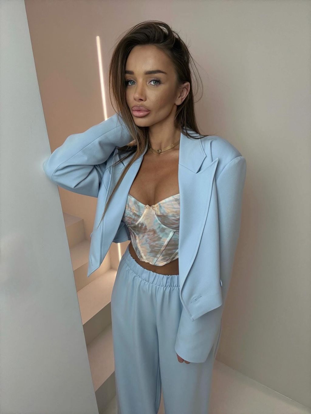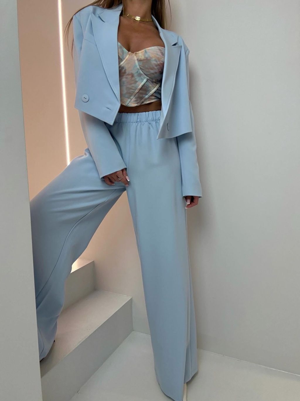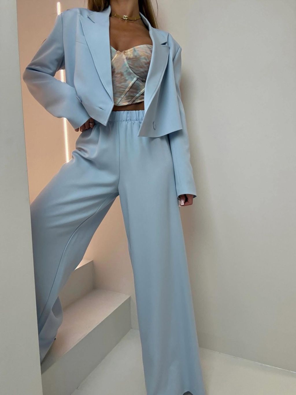 Modrý elegantní luxusní kalhotový kostým ZENYA