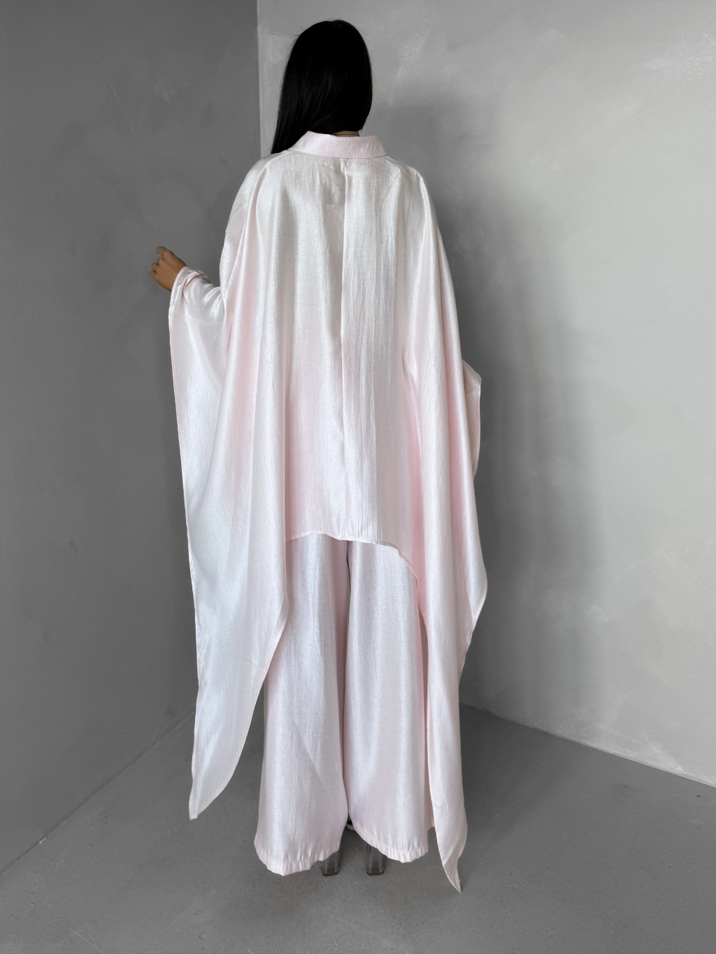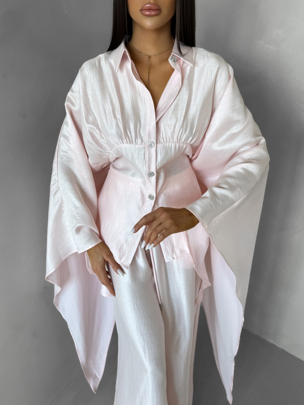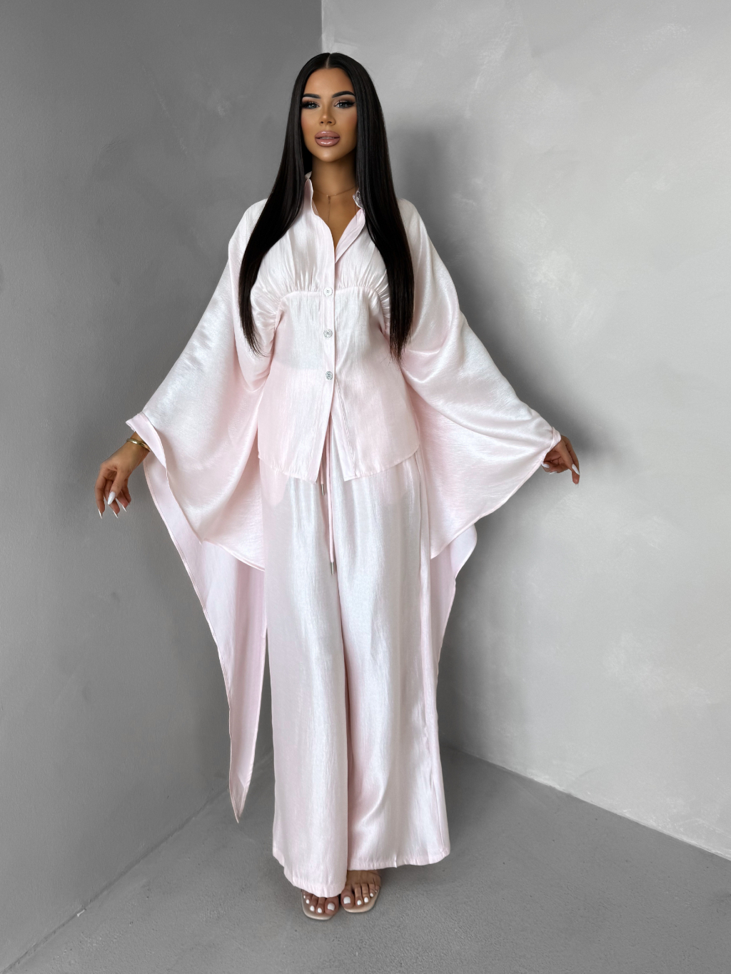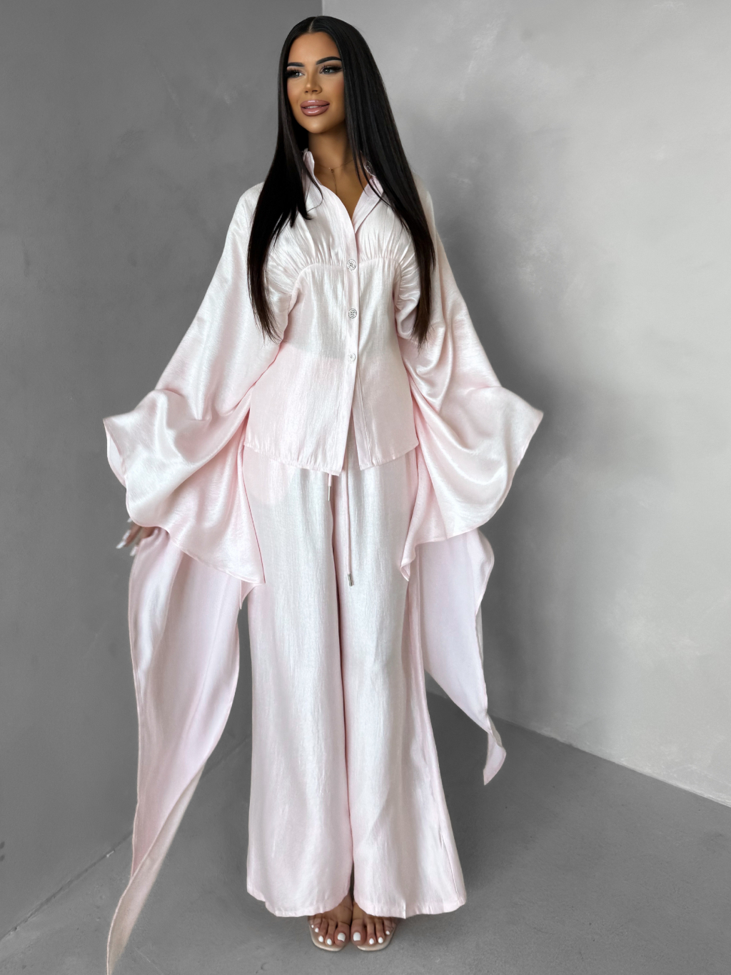 Růžový kalhotový dlouhý elegantní komplet IMPACT