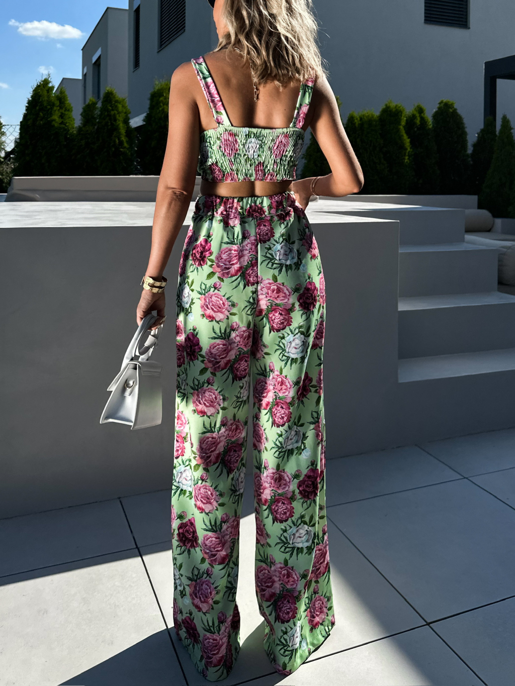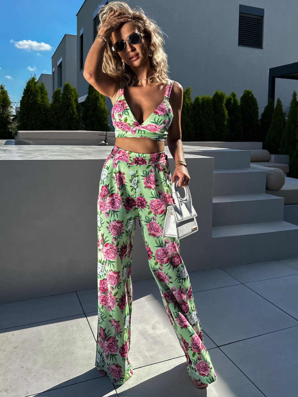 Zelený květovaný kalhotový komplet KARYL s topem