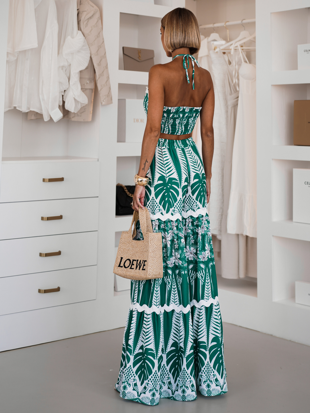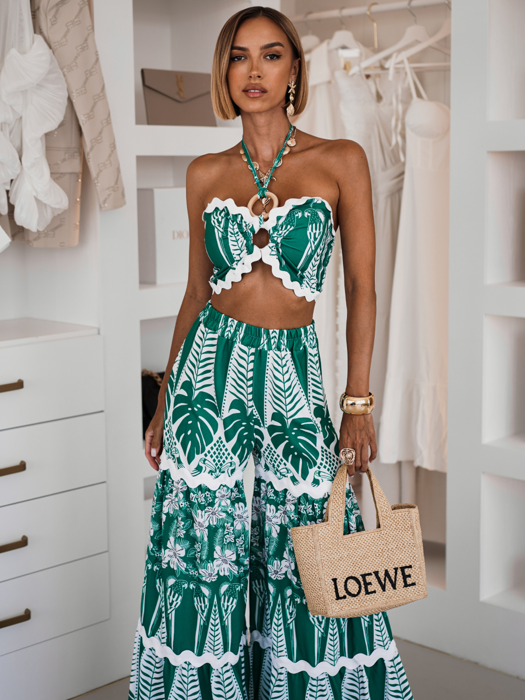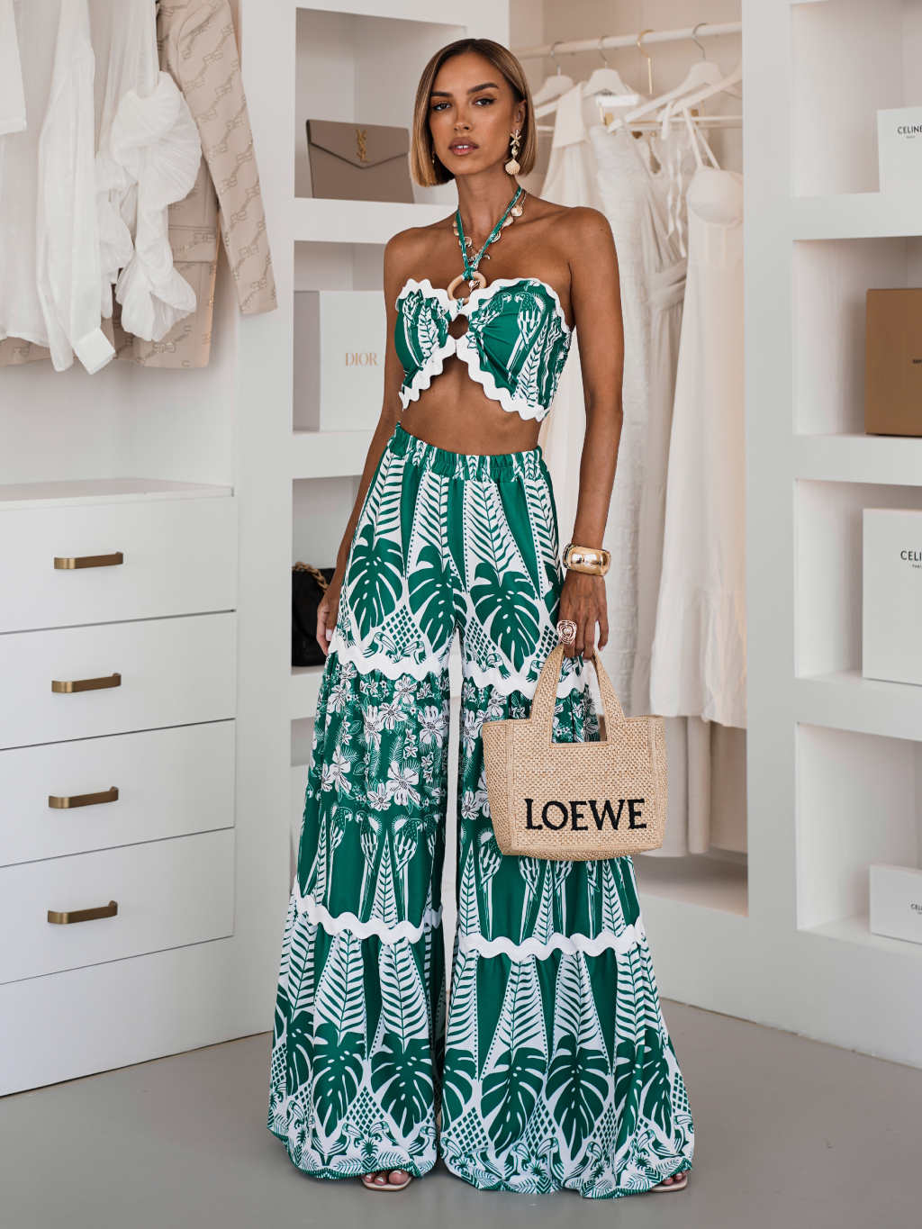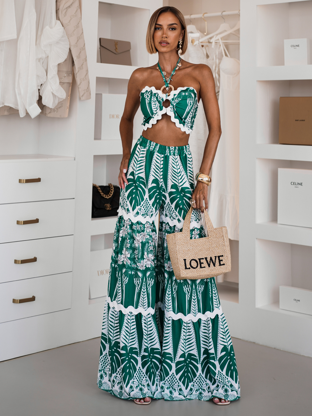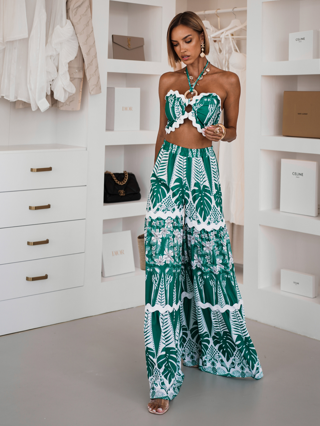 Zelený vzorovaný letní kalhotový komplet SERAPHY