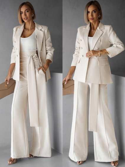 Krémový třpytivý luxusní kalhotový komplet NIMEA