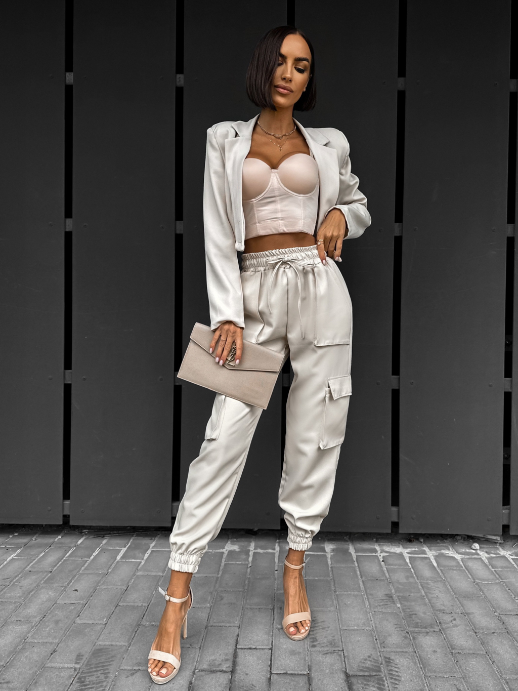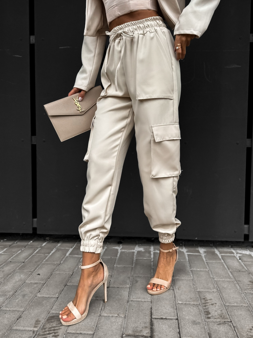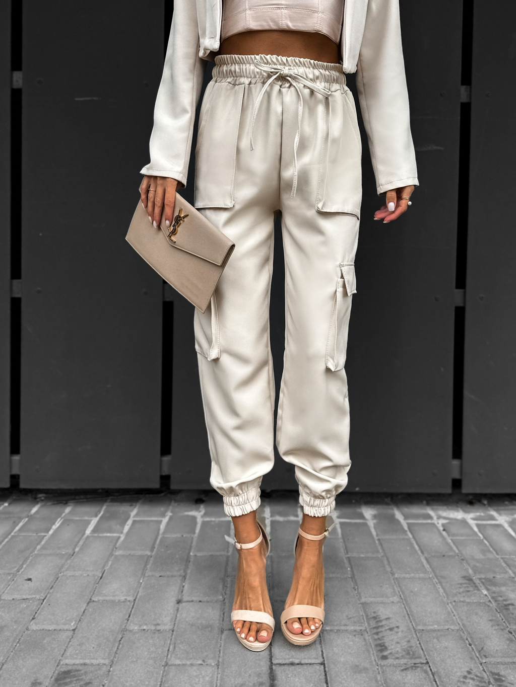 Béžové cargo kalhoty HANALIN s kapsami