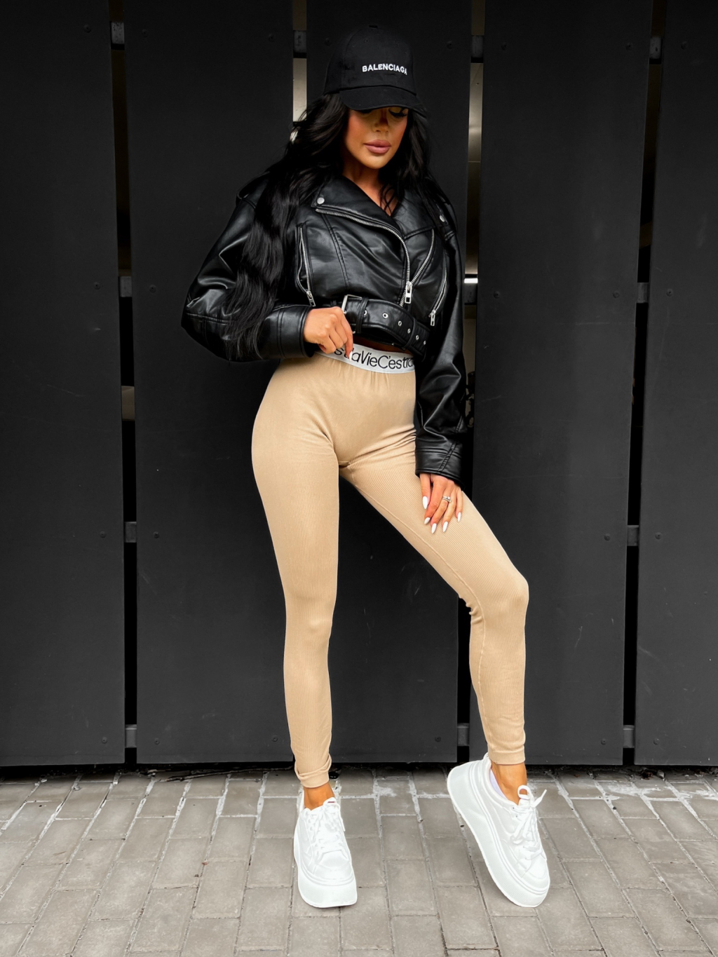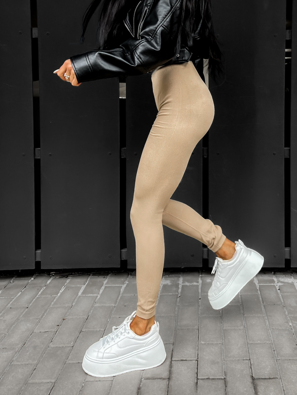 Béžové dlouhé legíny DOLASE