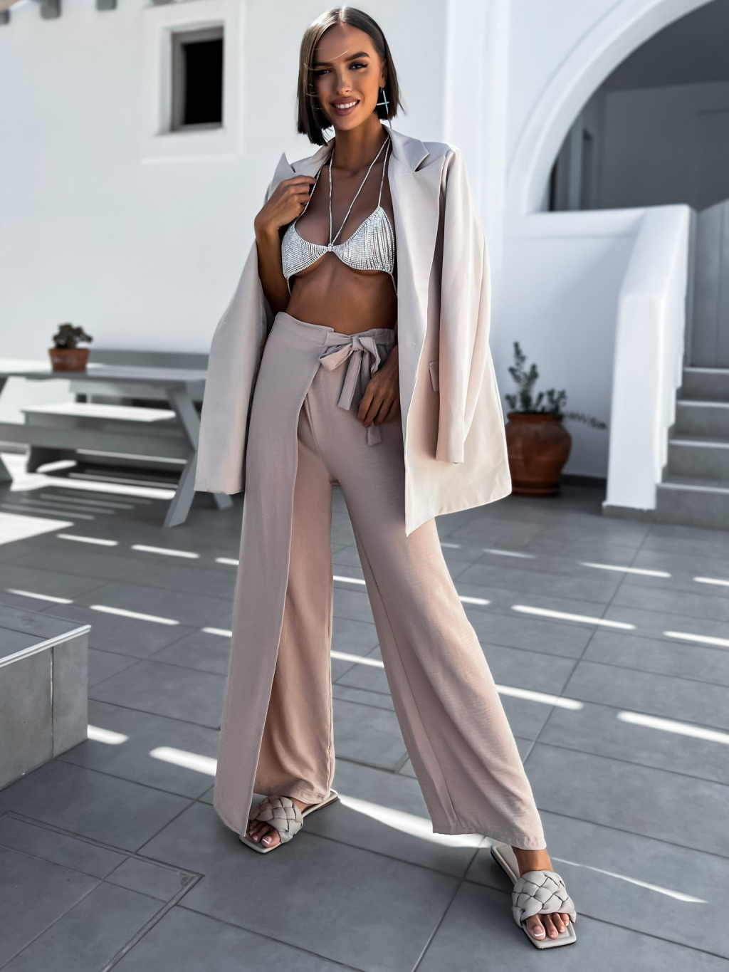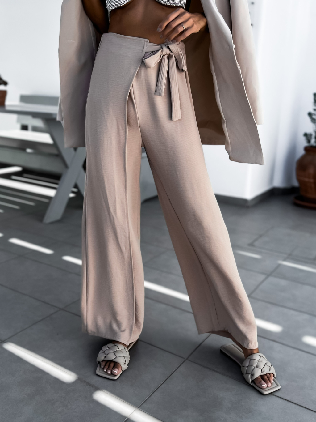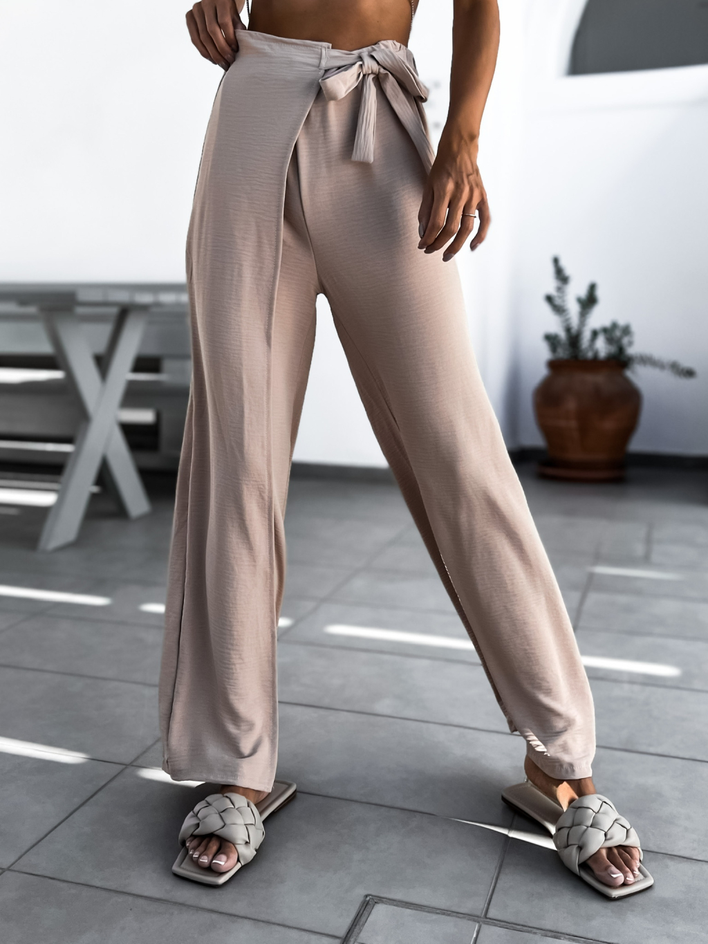 Béžové elegantní kalhoty SHARRON na zavazování