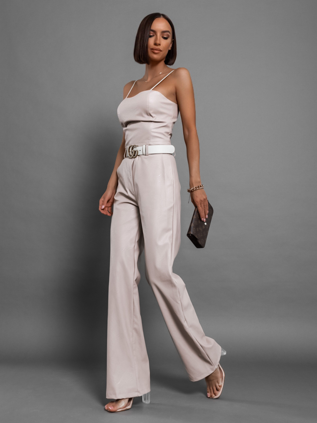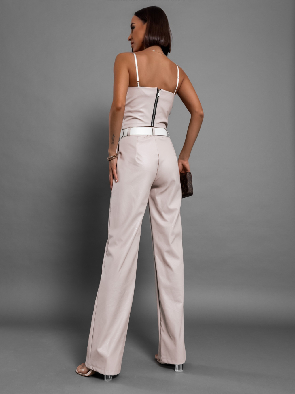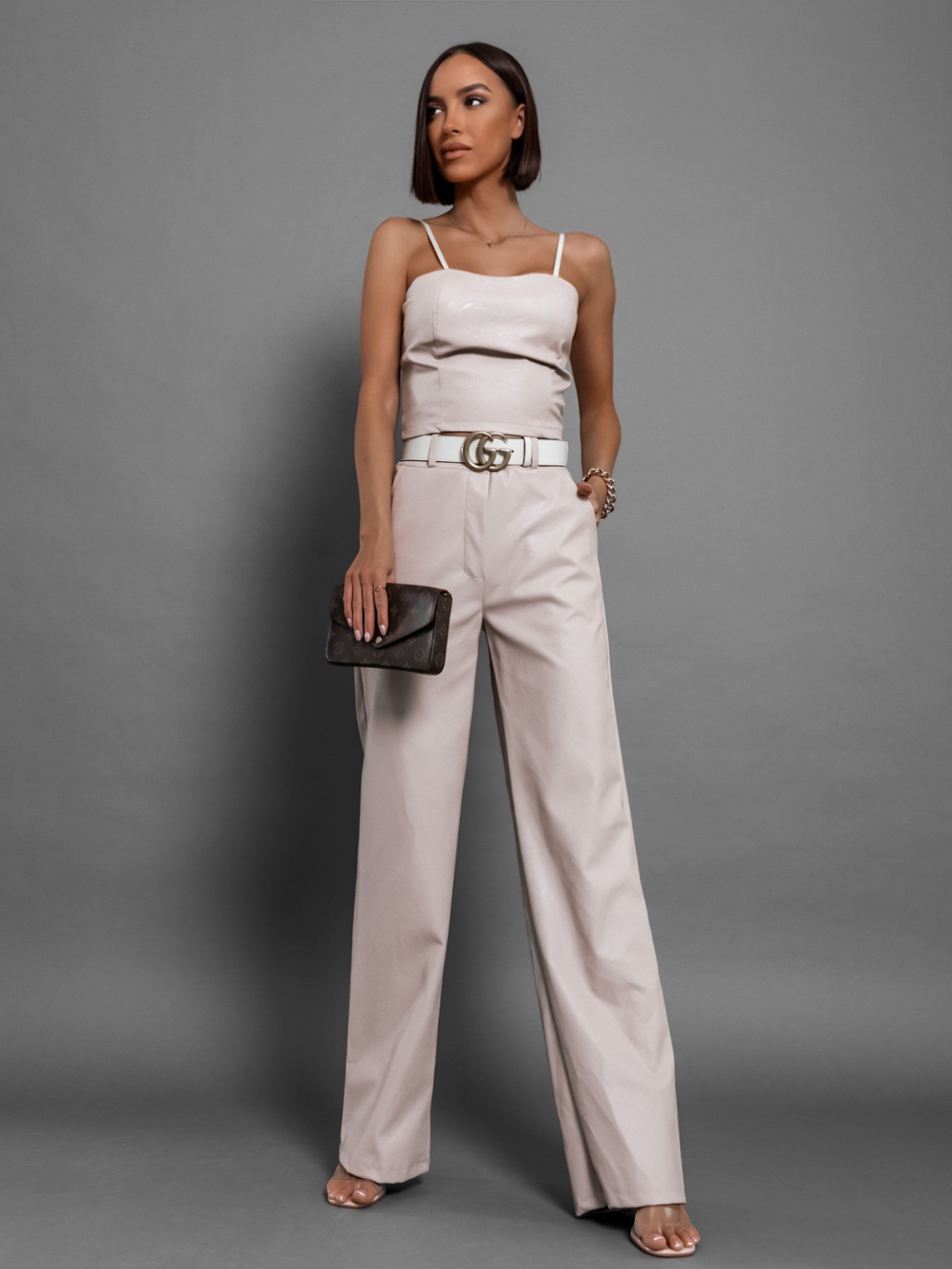 Béžový dvoudílný komplet SUPRIME koženkového vzhledu