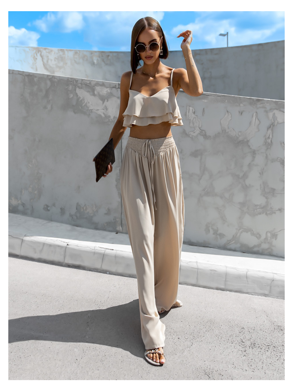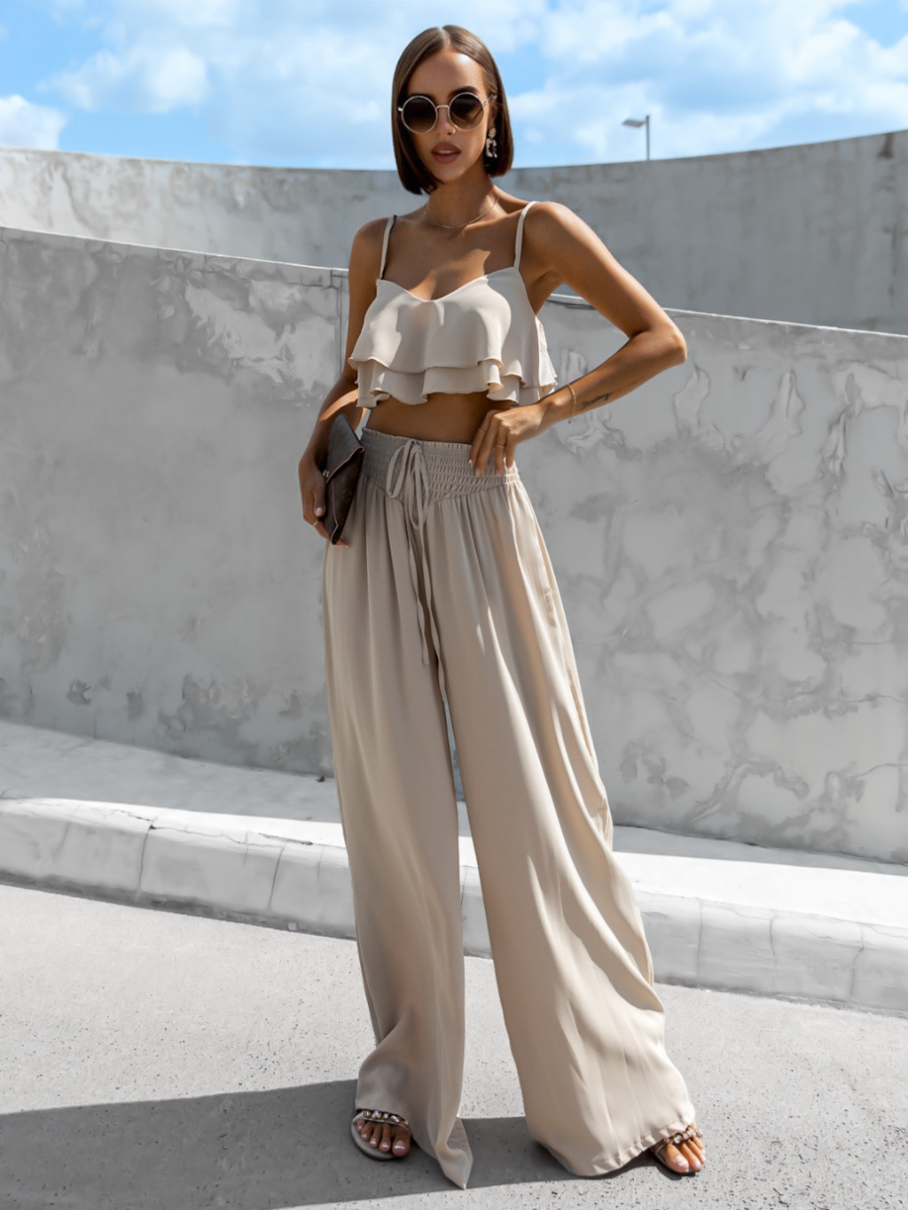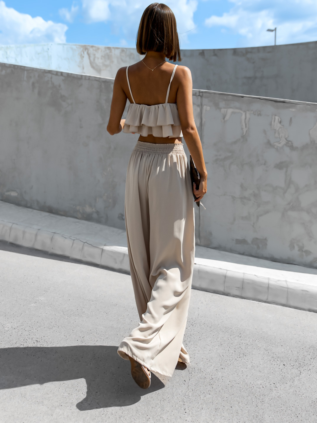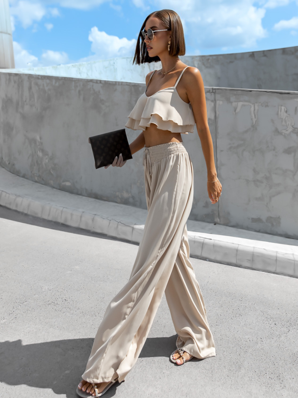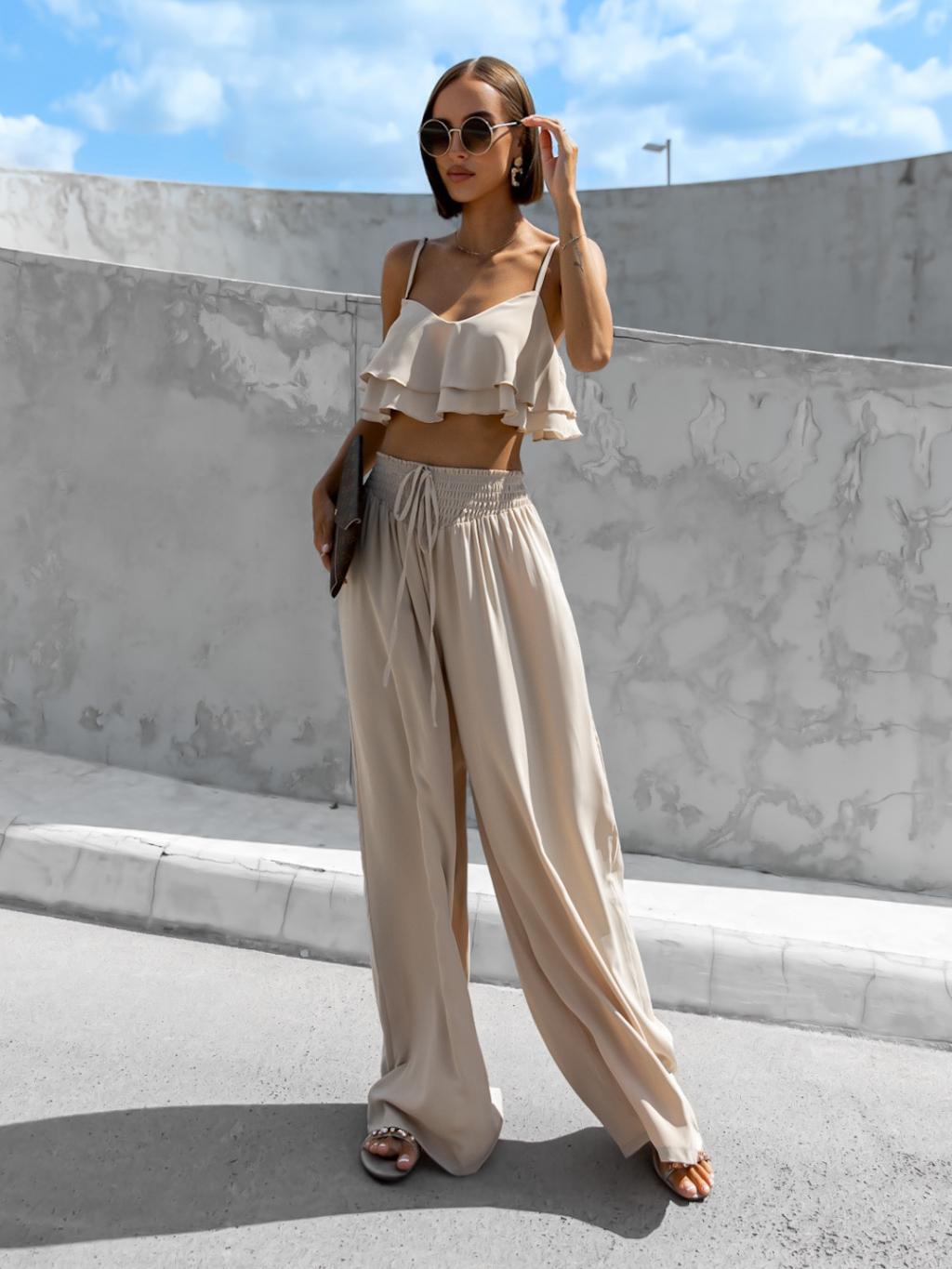 Béžový elegantní dvoudílný komplet CORDELIE s volánky