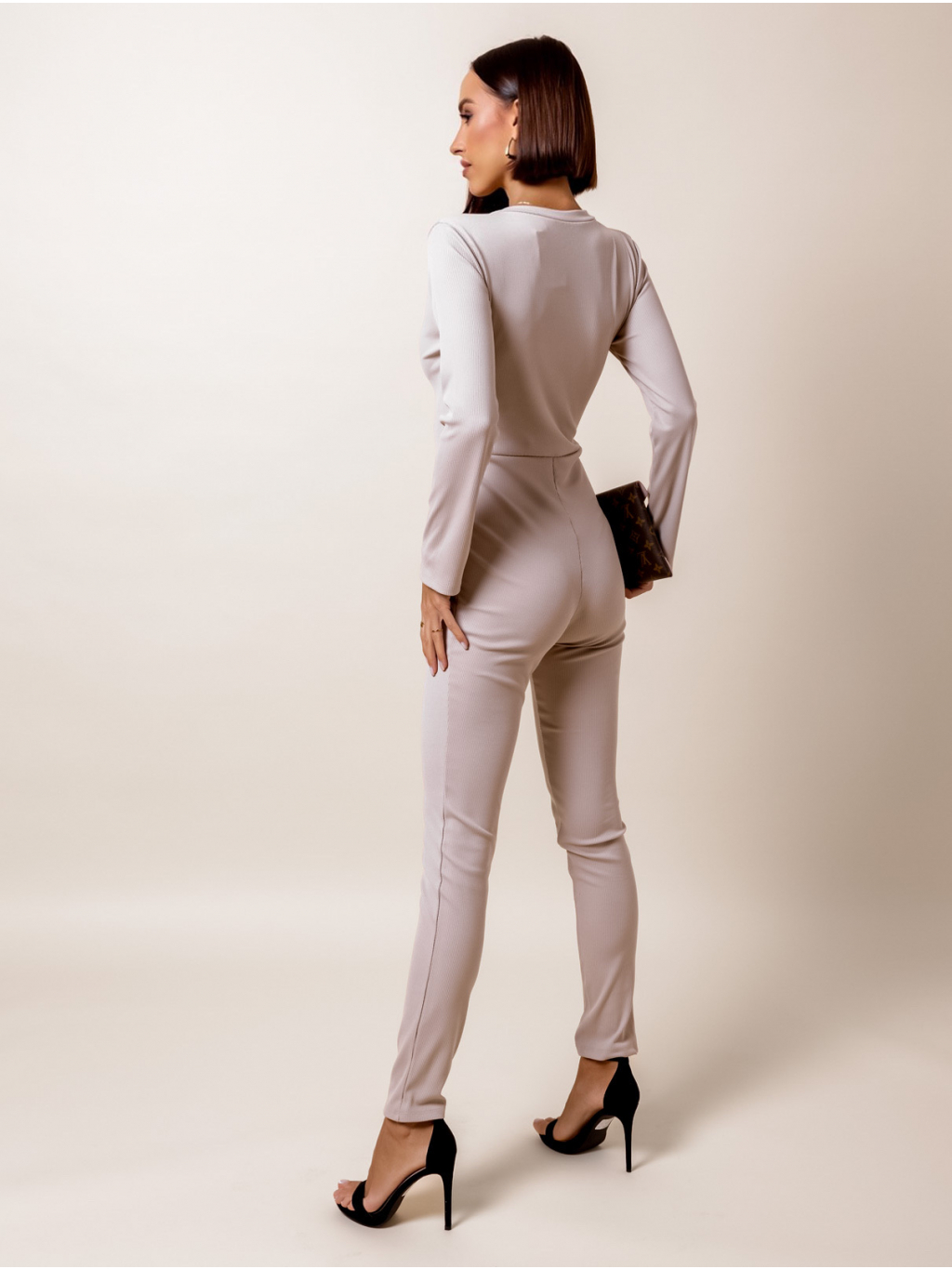Béžový jednoduchý overal KAYA s dlouhým rukávem