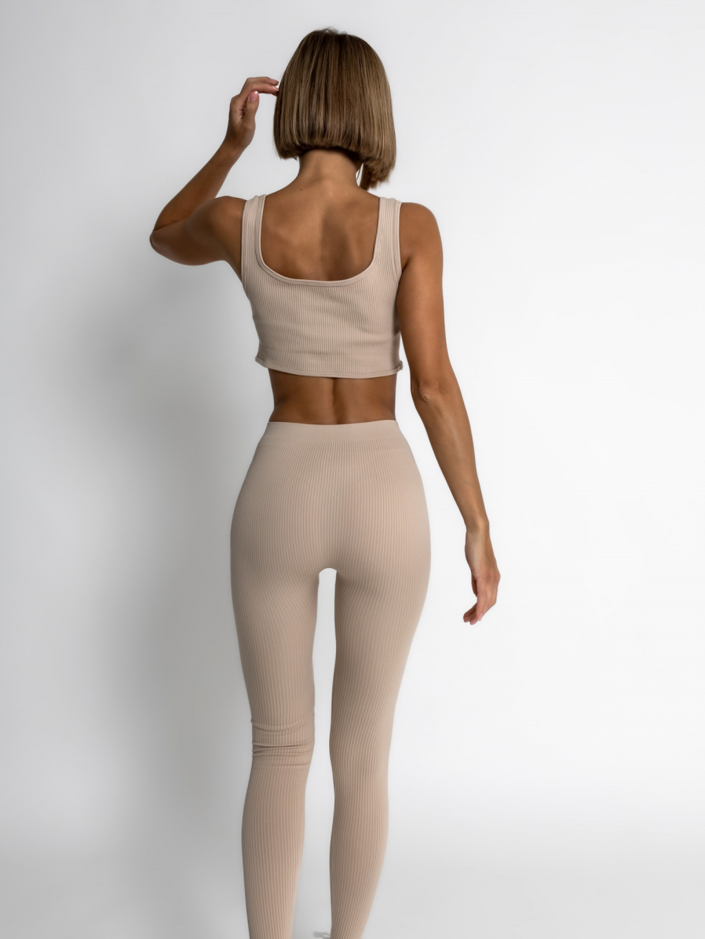 Béžový žebrovaný dvoudílný komplet NATALISE