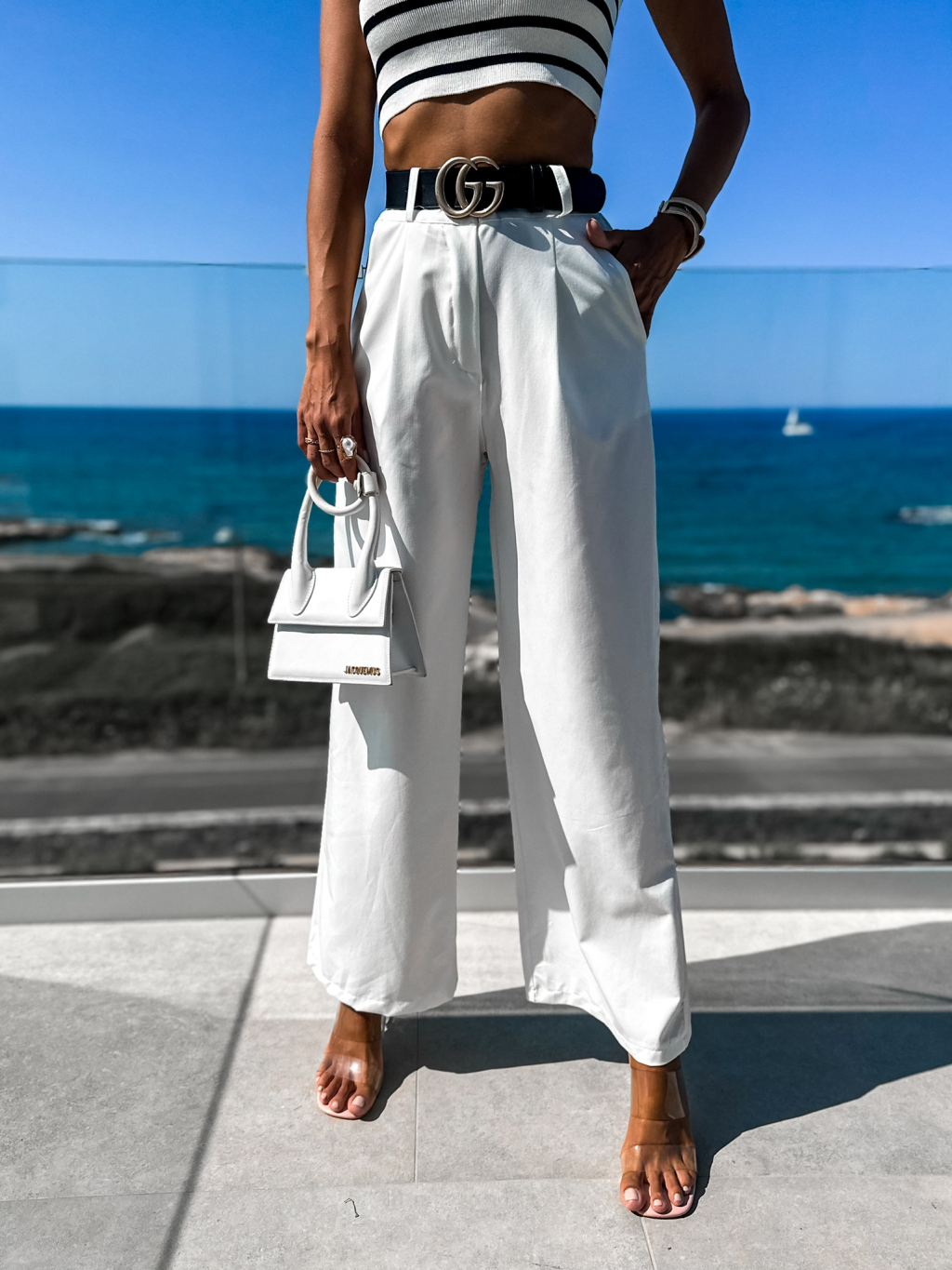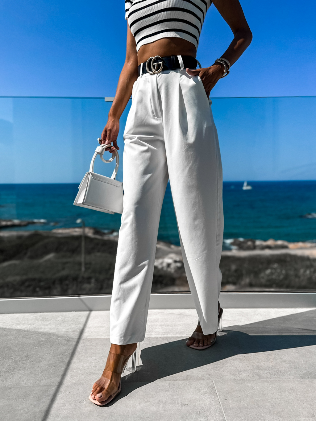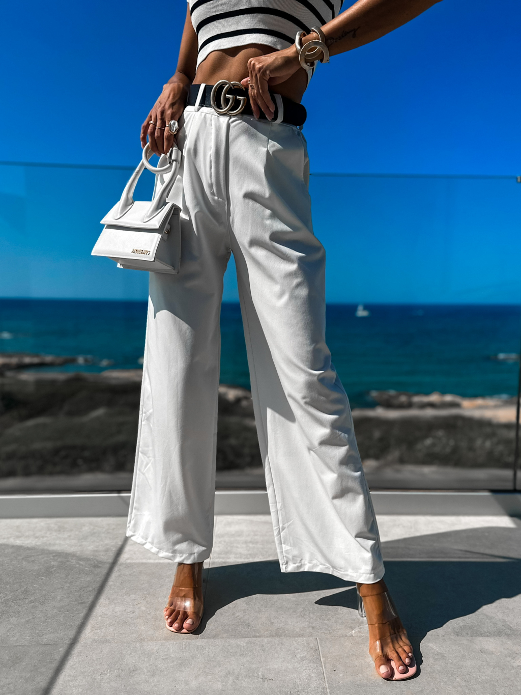Bílé elegantní kalhoty MAEVES se širokými nohavicemi