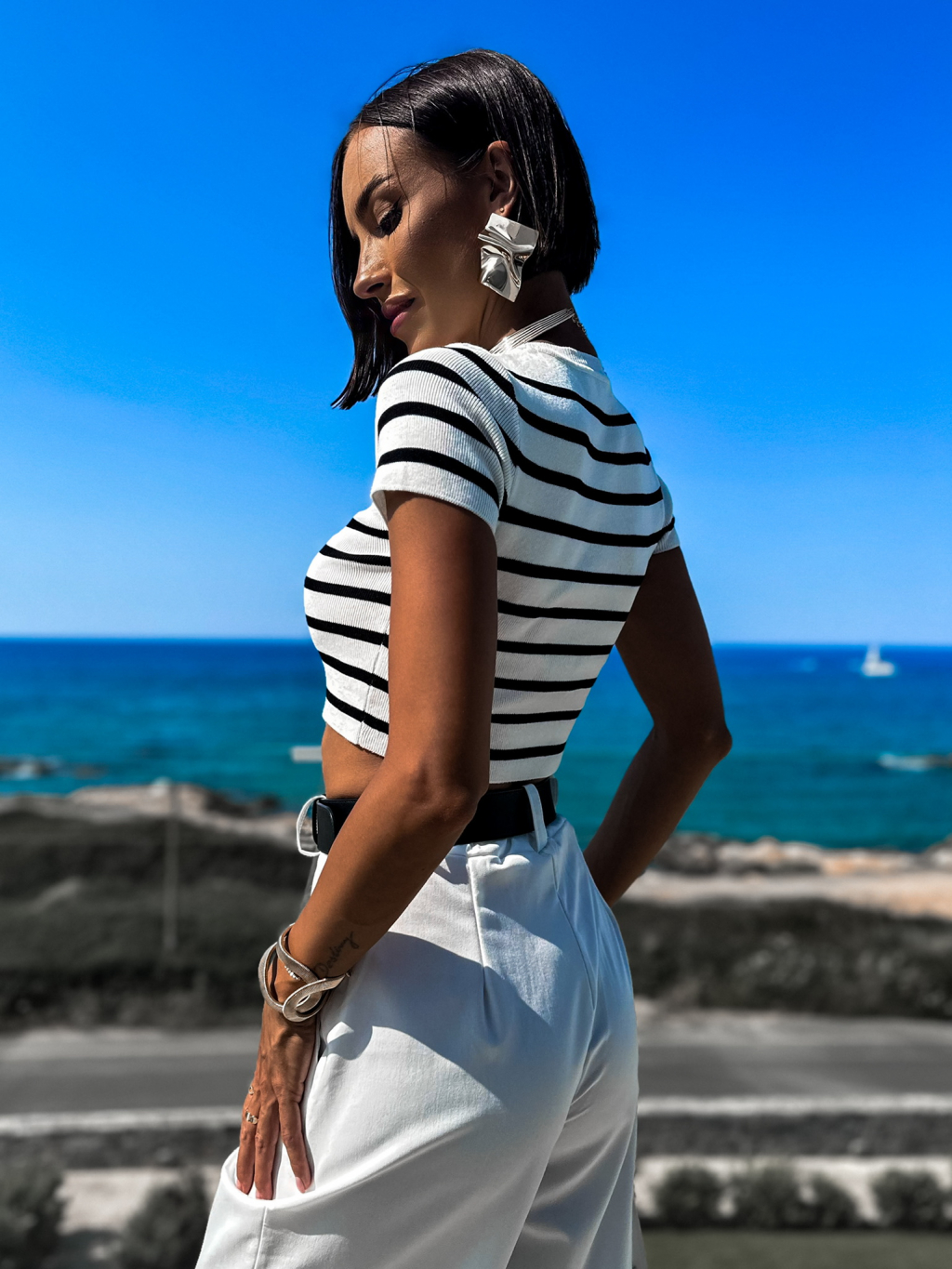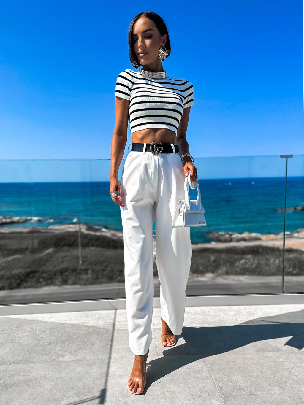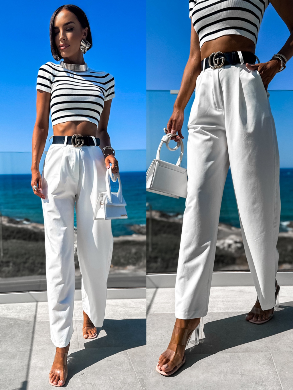 Bílé elegantní kalhoty MAEVES se širokými nohavicemi