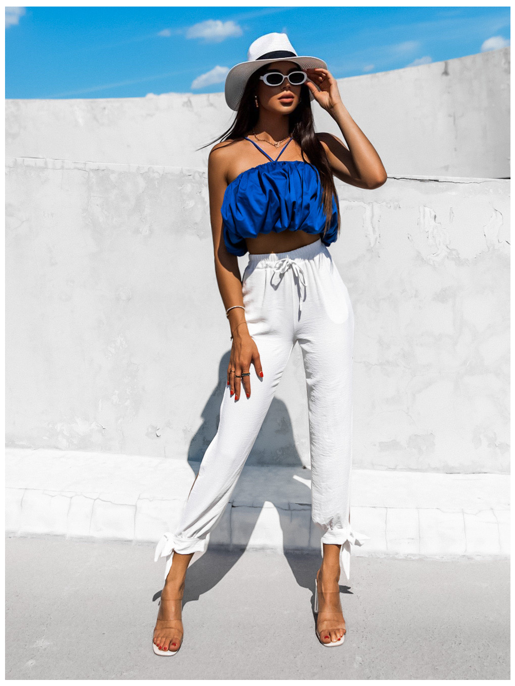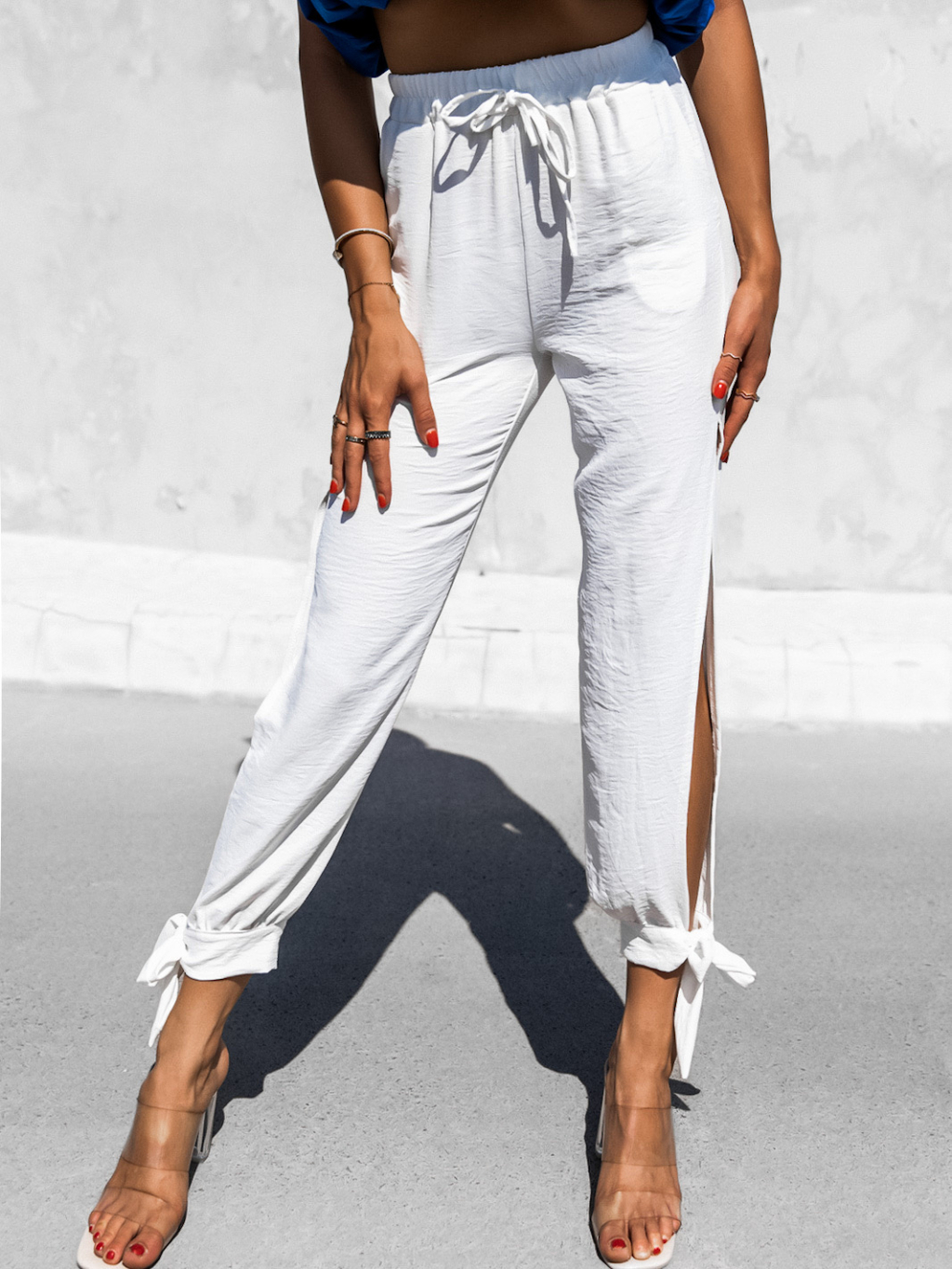 Bílé elegantní kalhoty PUMPKIN s průstřihy