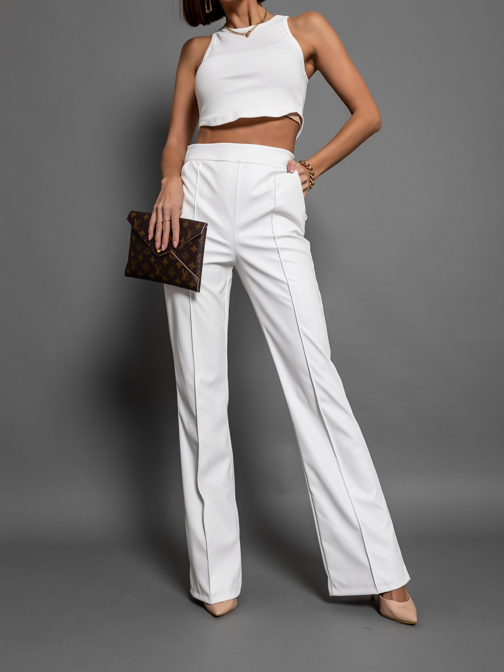 Bílé kalhoty STRIETLY s rozšířenými nohavicemi