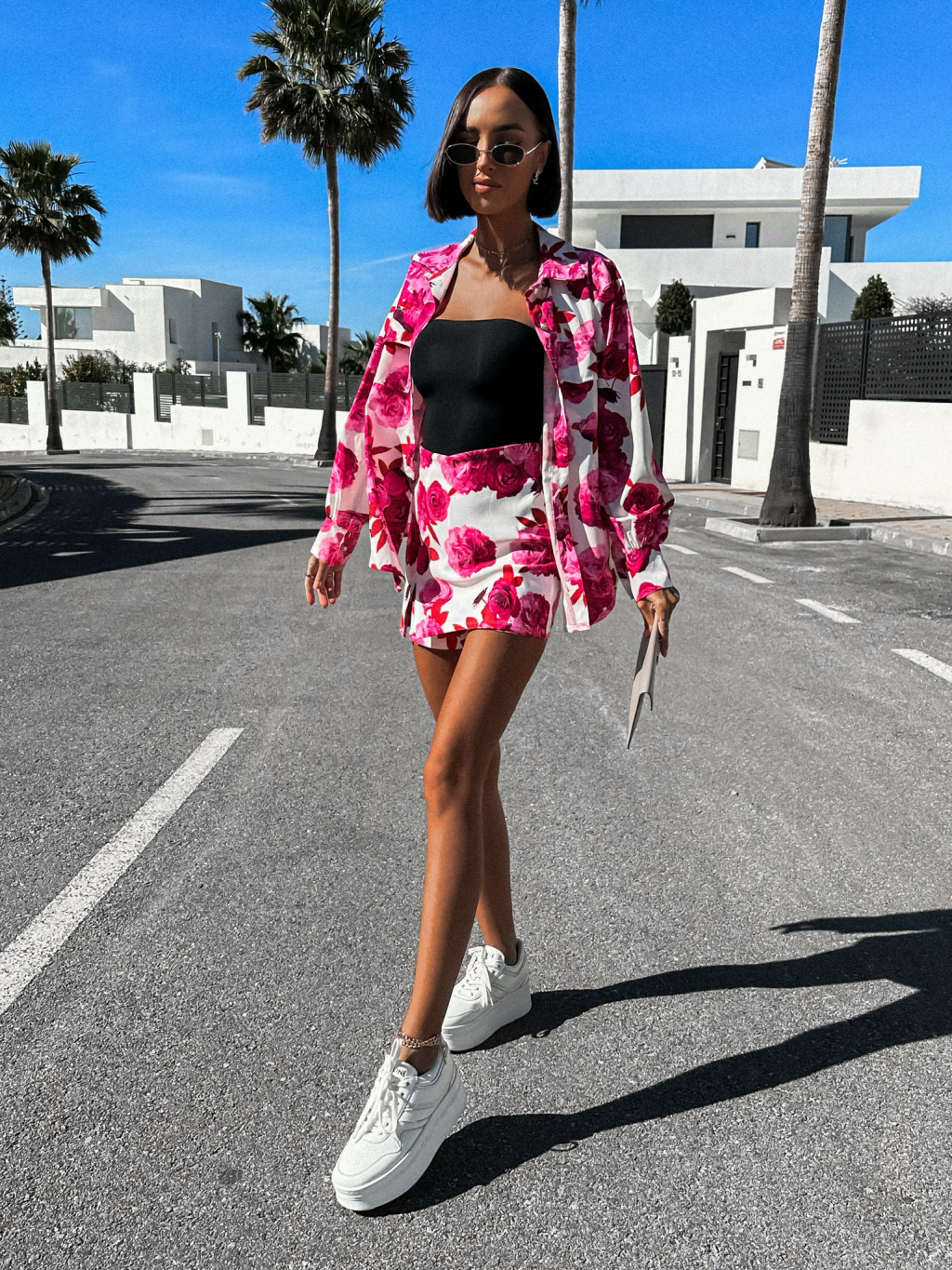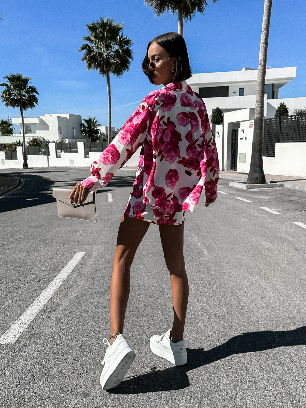 Bílý dvoudílný komplet BOWIEE s květinovým vzorem