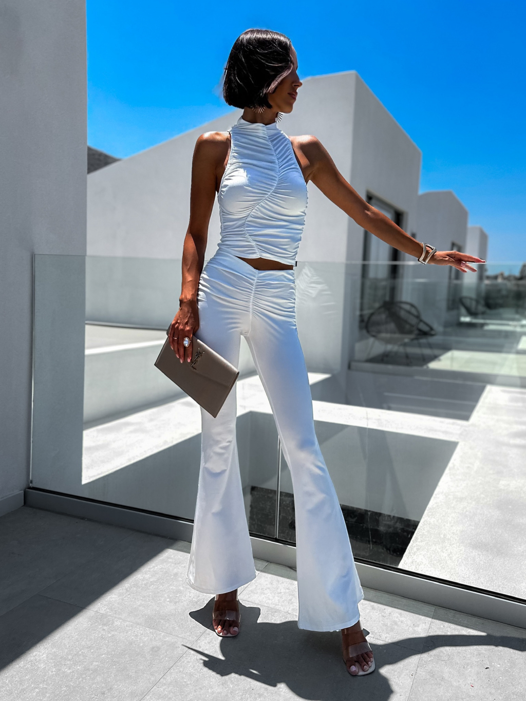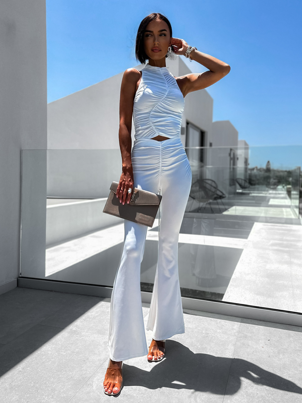 Bílý elegantní dvoudílný komplet COLENS s vrásněním
