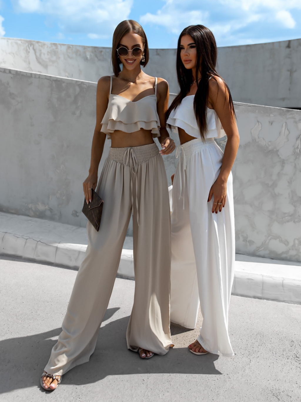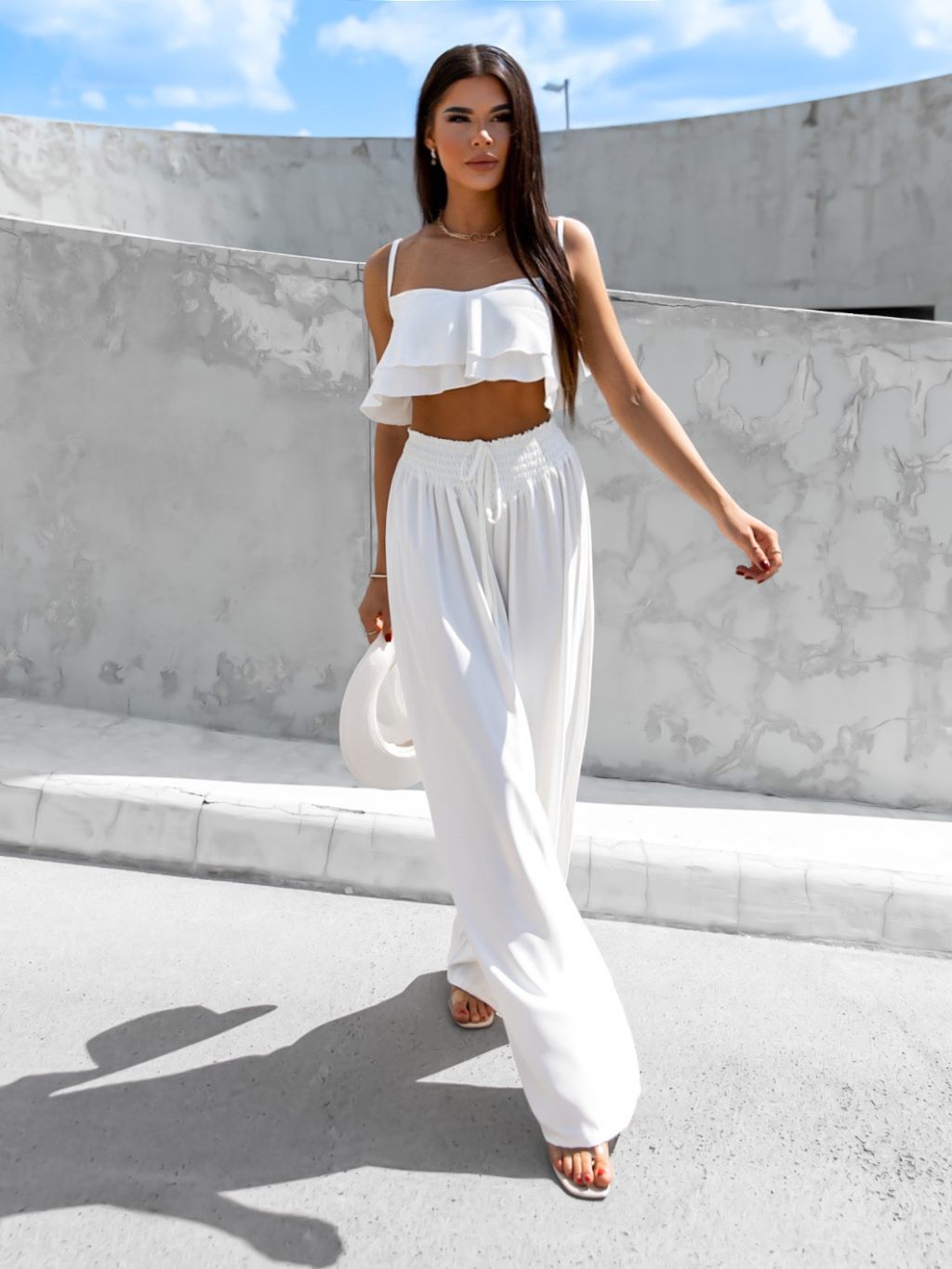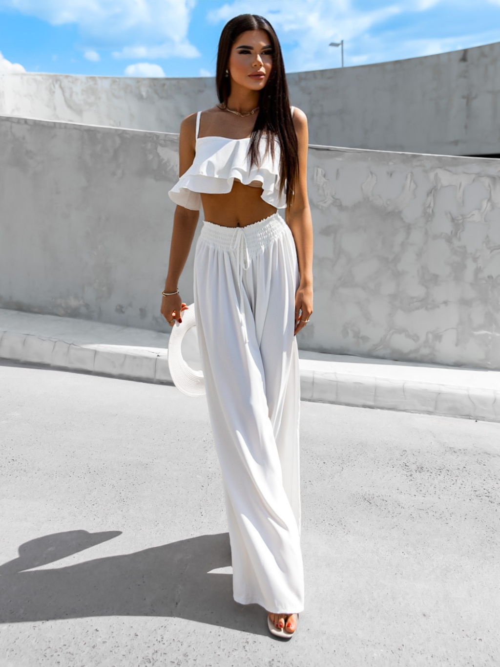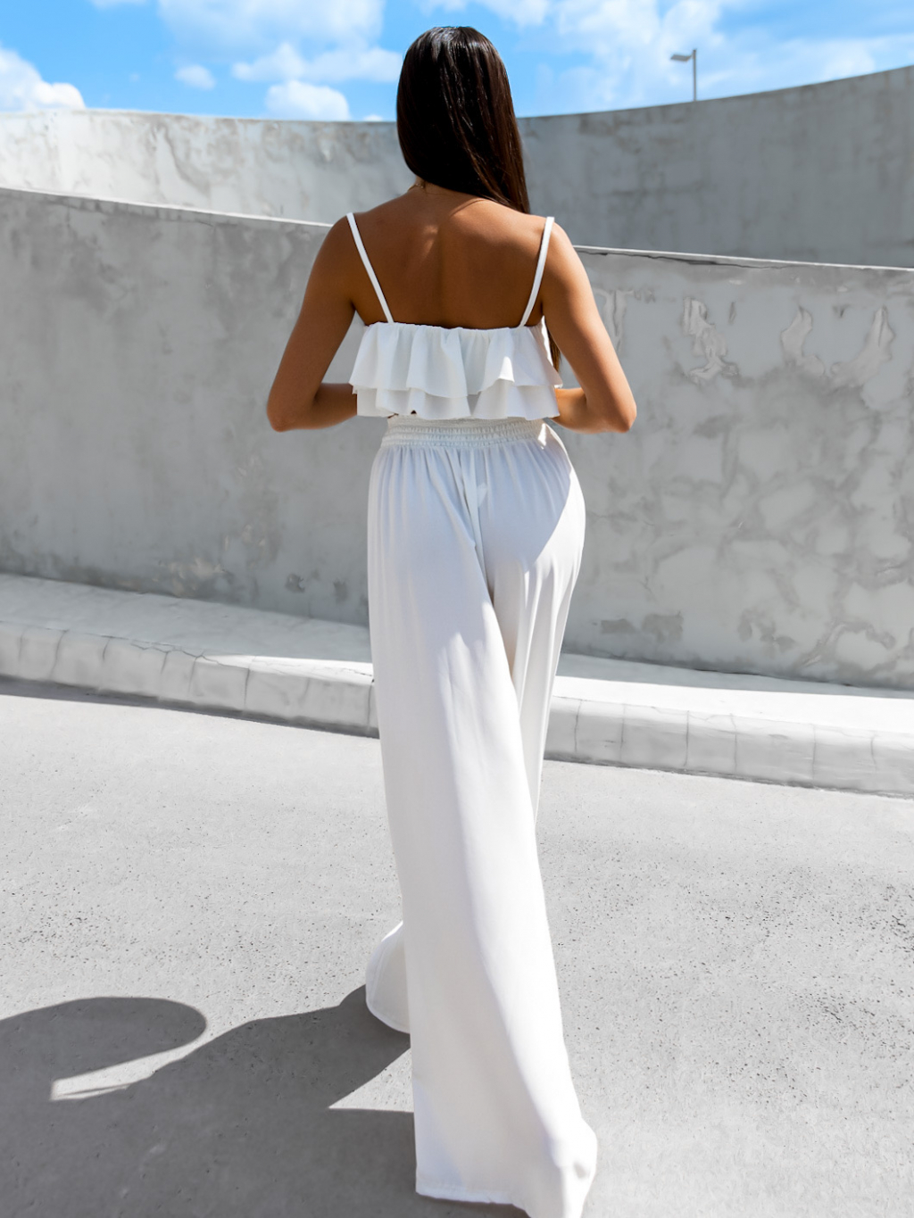Bílý elegantní dvoudílný komplet CORDELIE s volánky