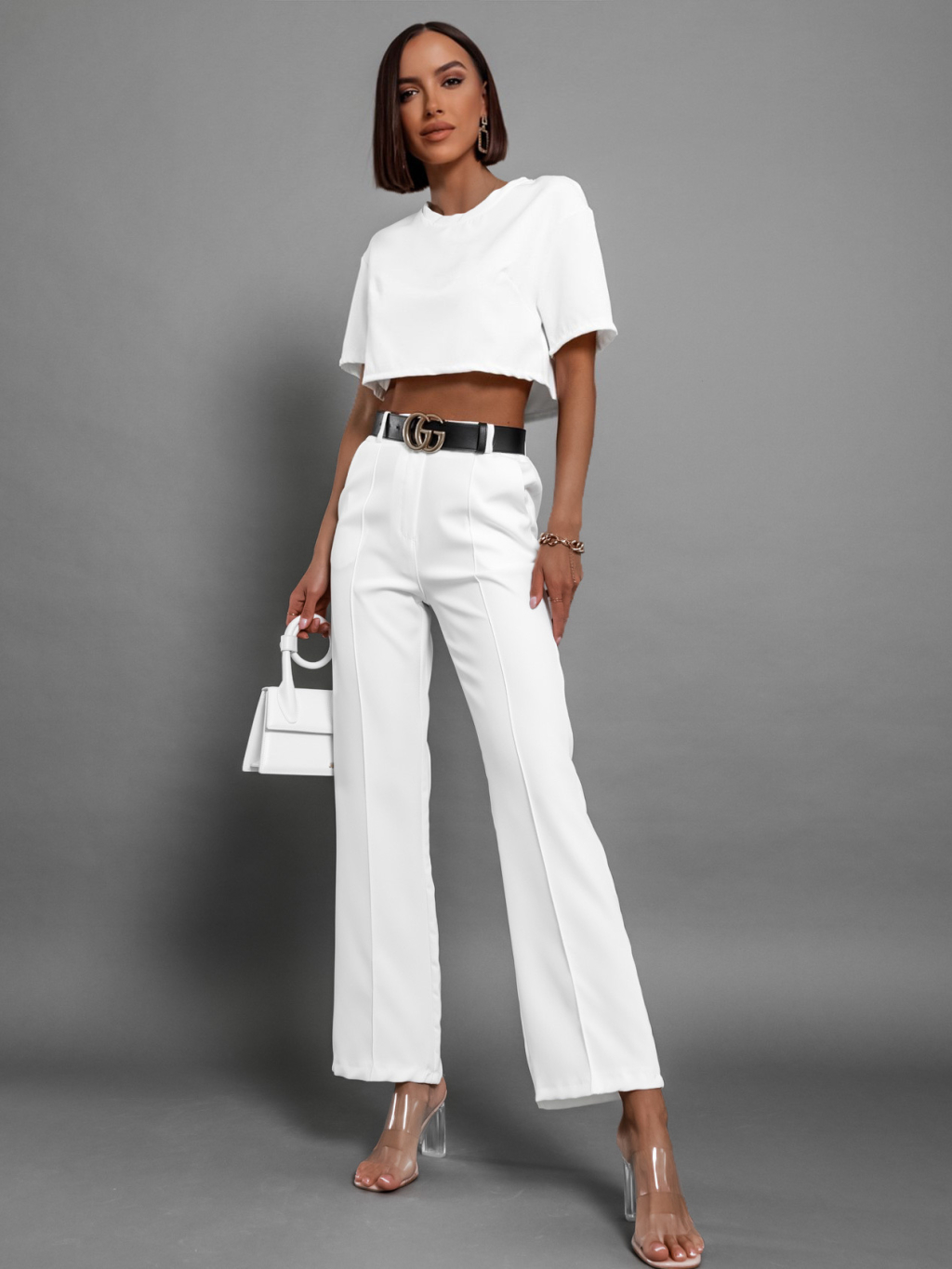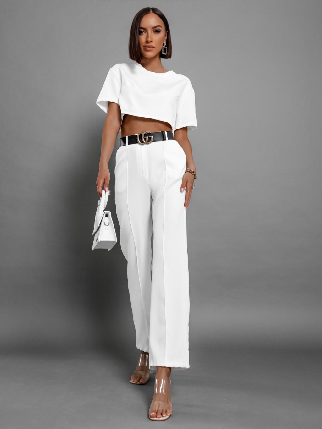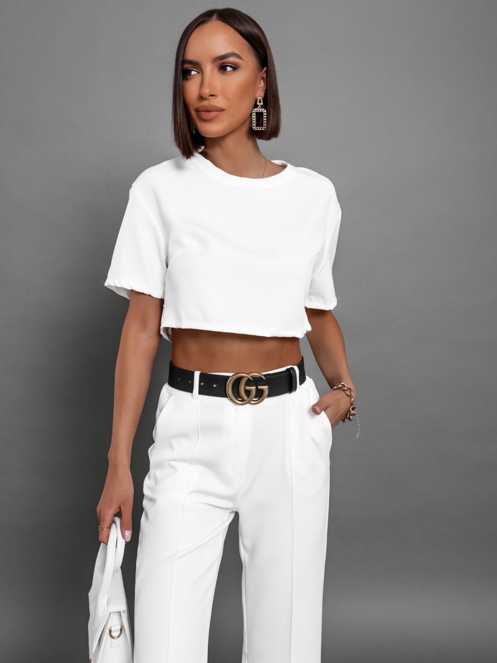 Bílý elegantní dvoudílný komplet CRYLLA