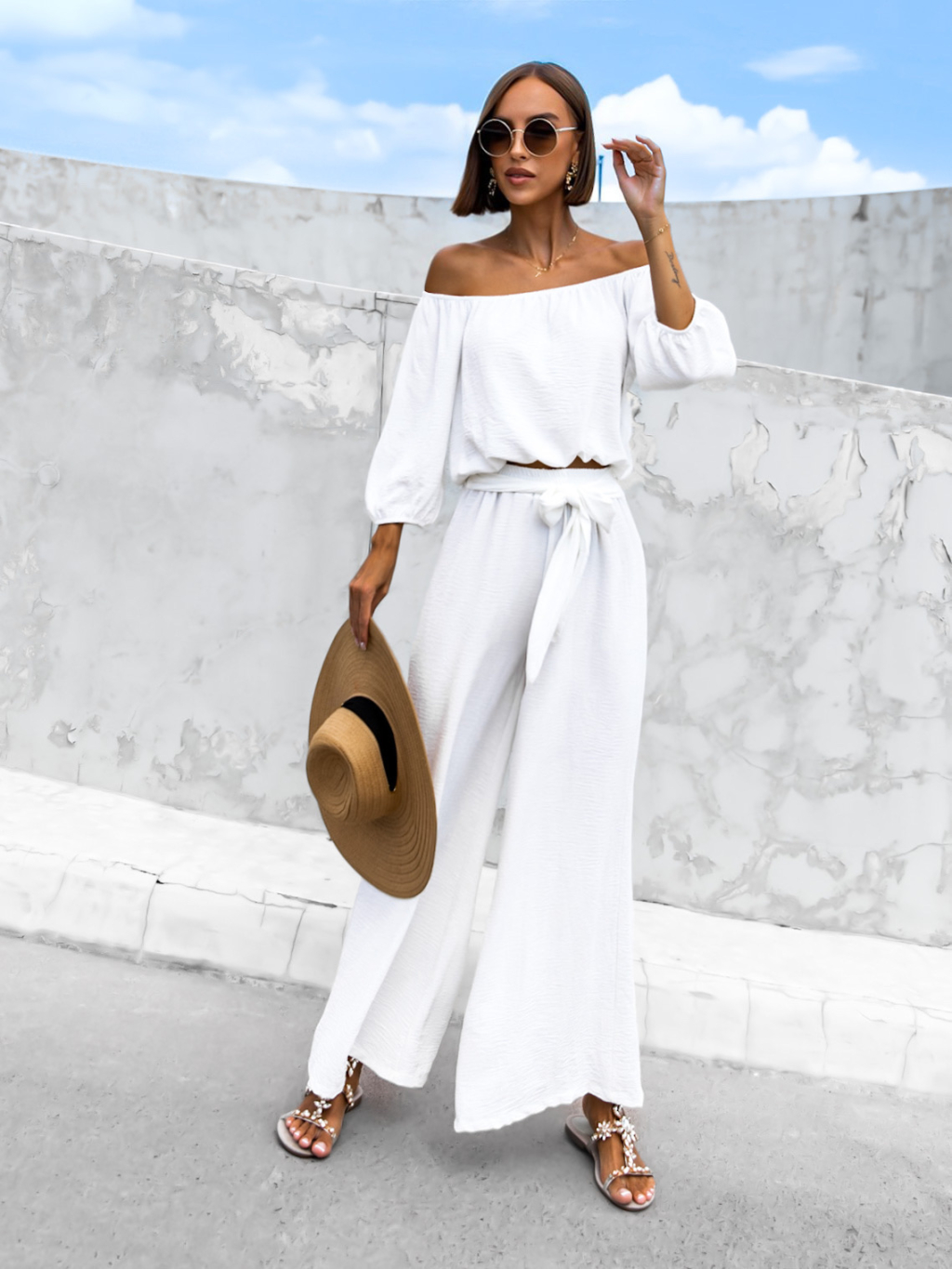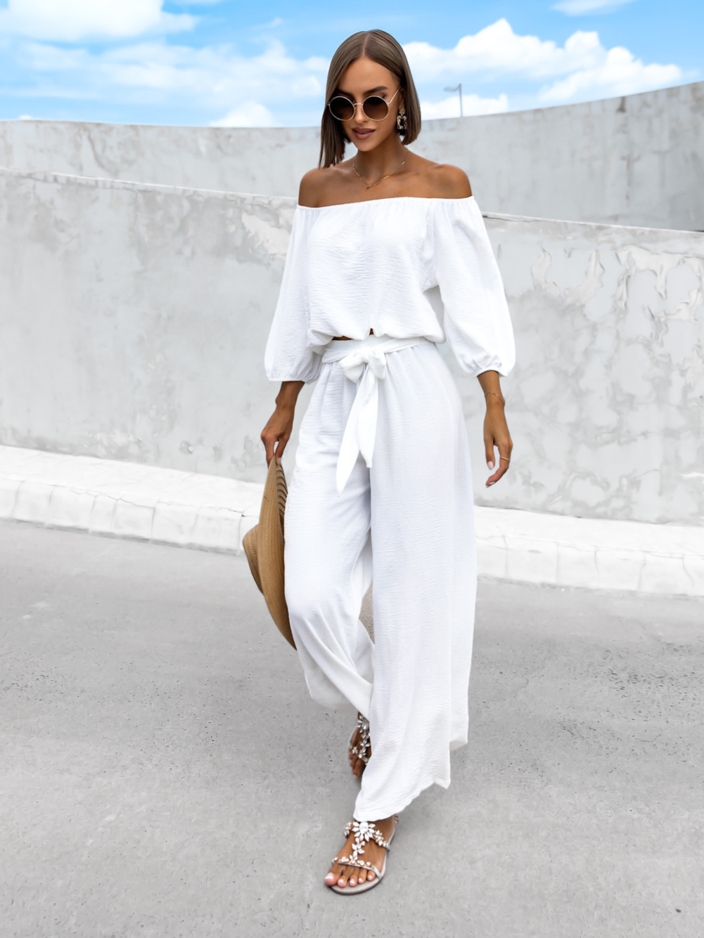 Bílý elegantní dvoudílný komplet HATTIE na zavazování