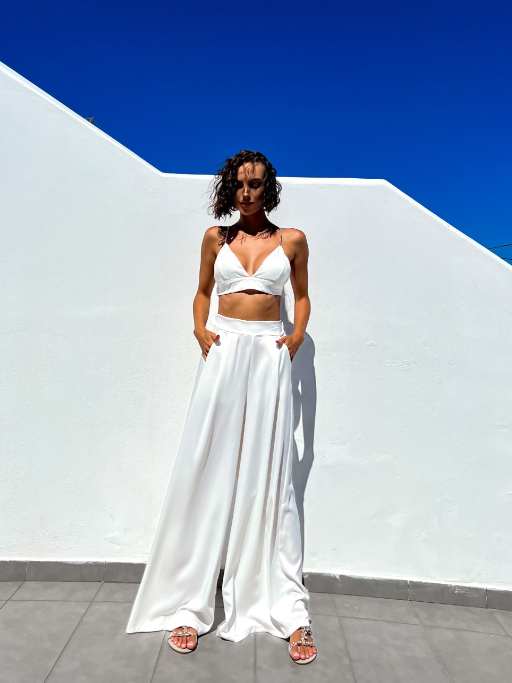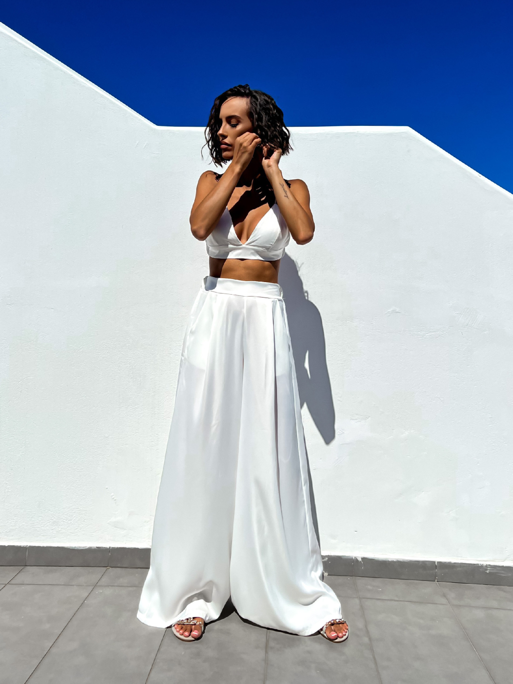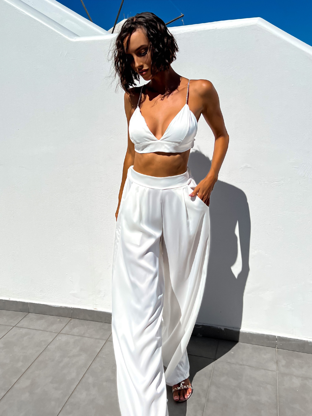 Bílý elegantní dvoudílný komplet SUCULENT s třpytivými kamínky