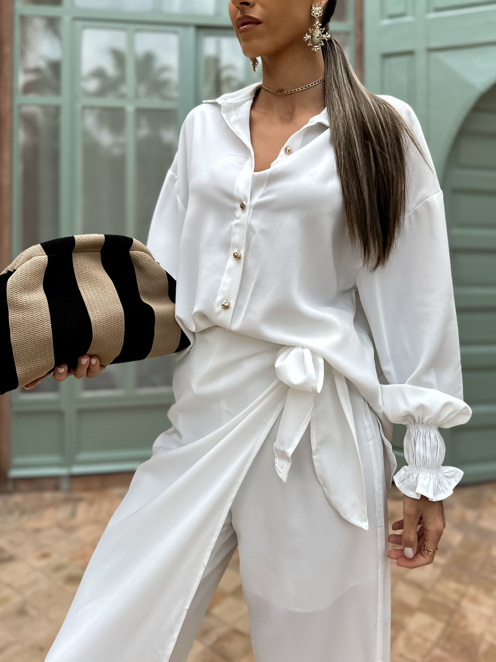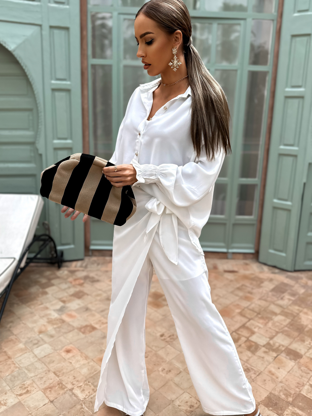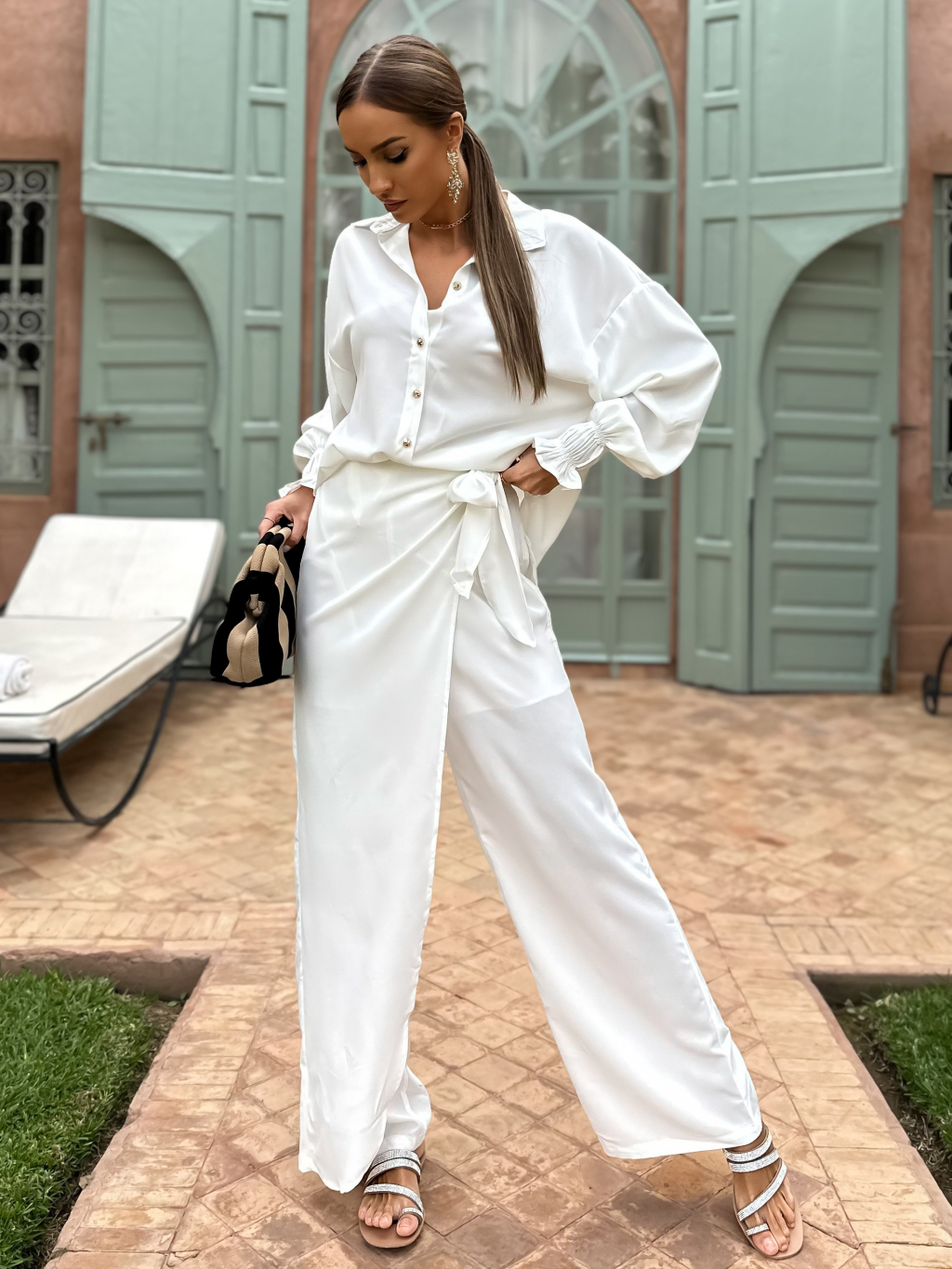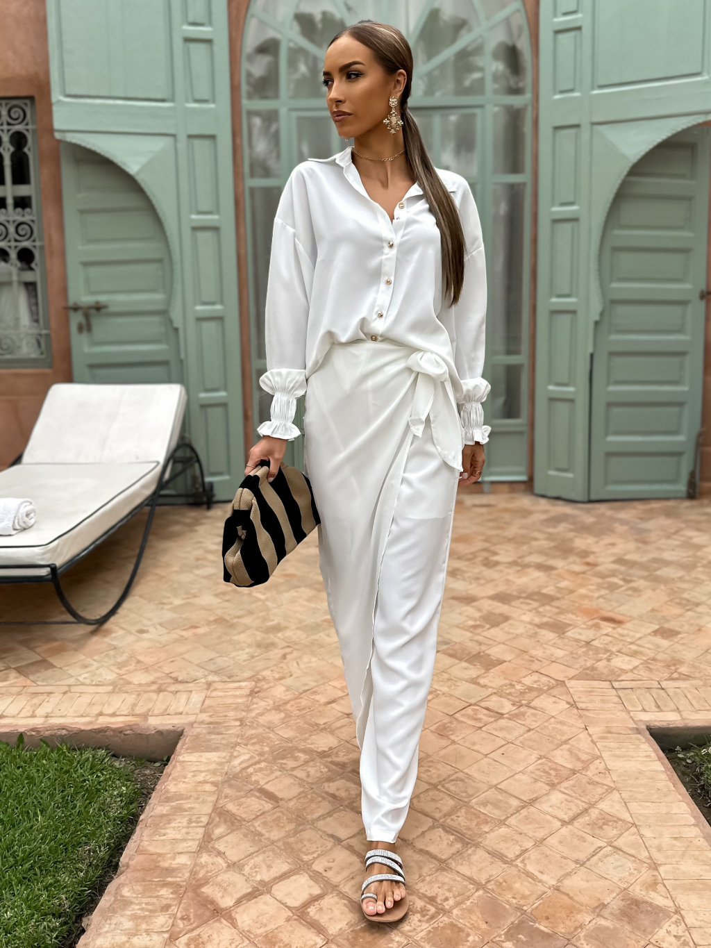 Bílý elegantní kalhotový komplet RIKENI s košilí