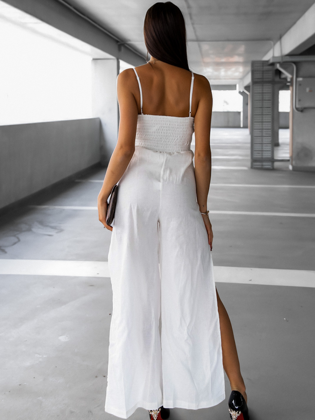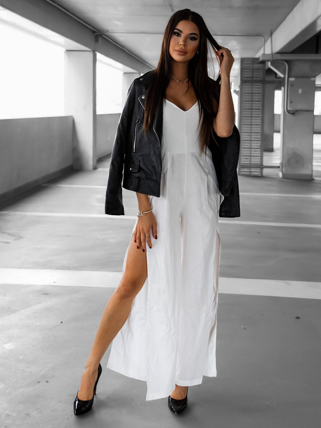 Bílý elegantní overal MAELIE s rozparky