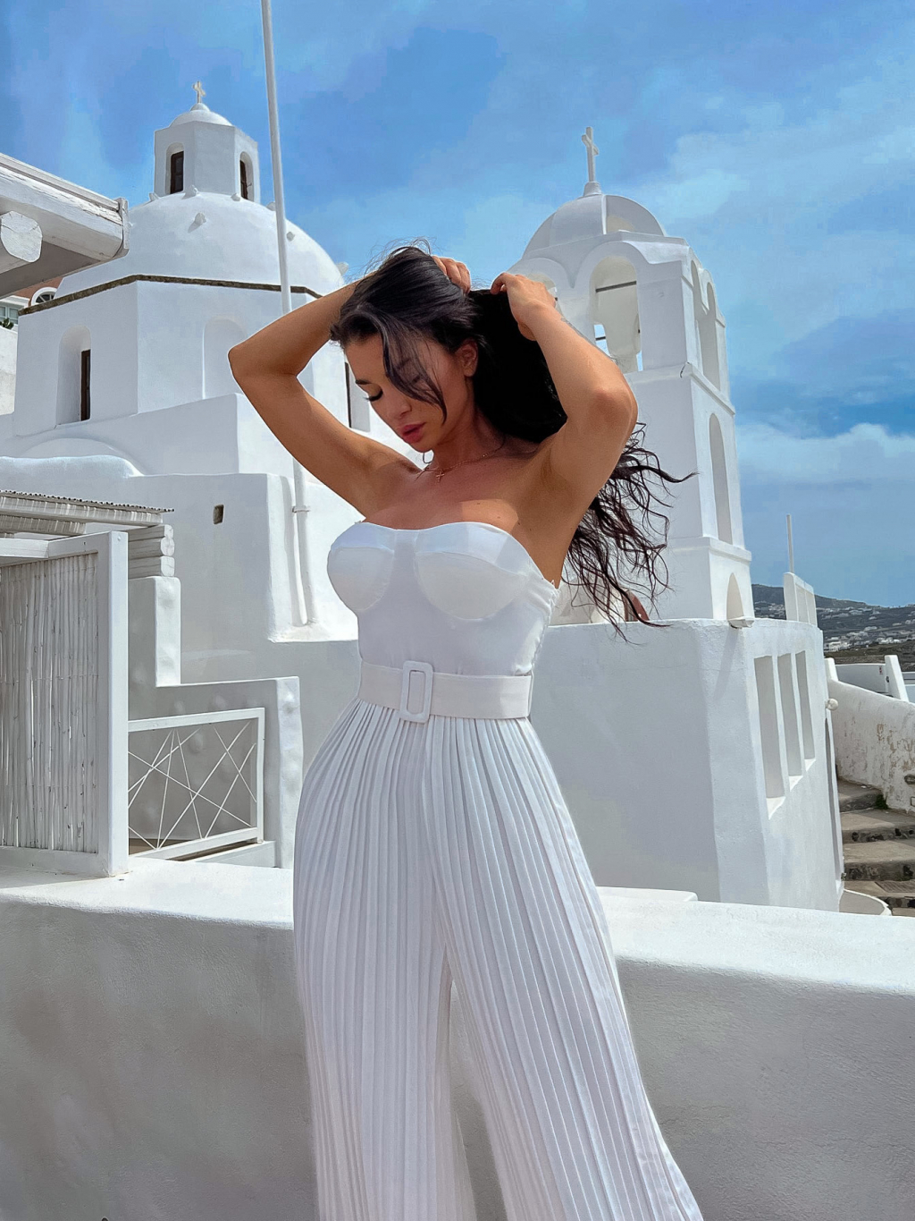 Bílý overal HICKORY s plisovanými kalhoty