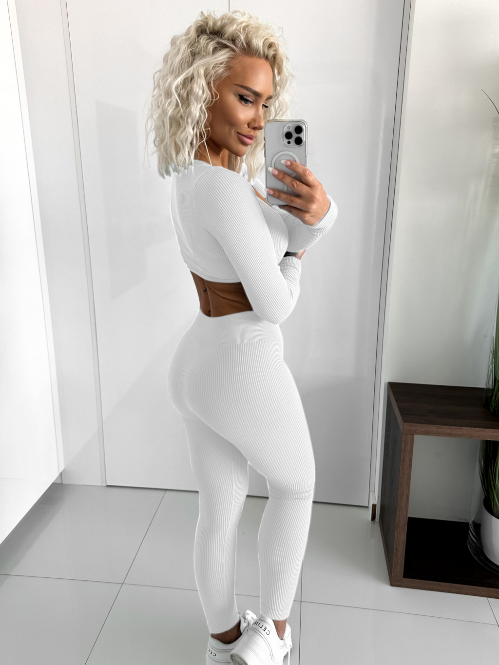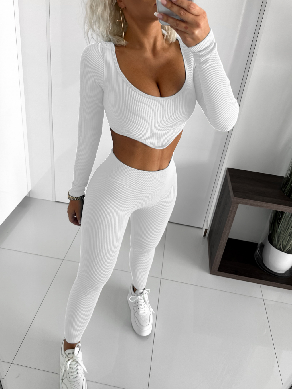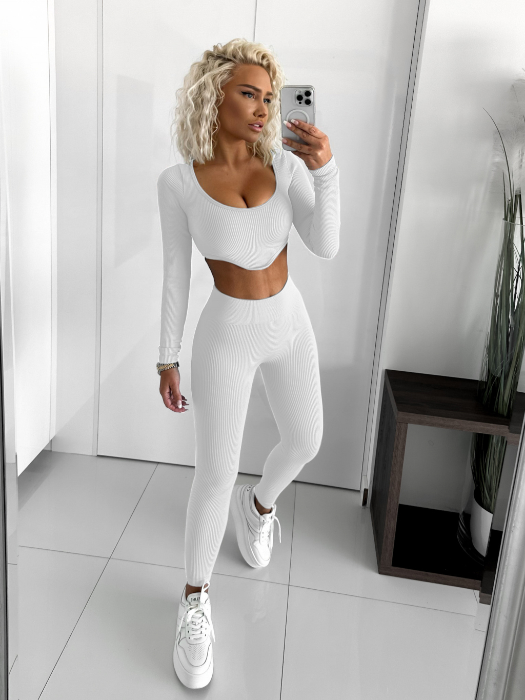 Bílý žebrovaný dvoudílný komplet LAVERDES
