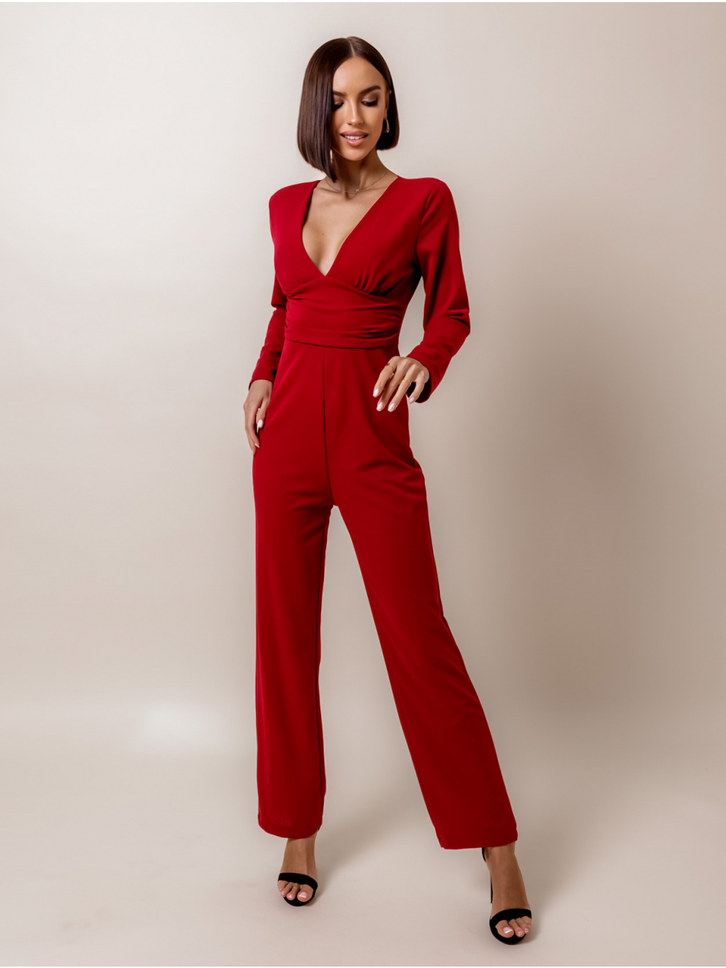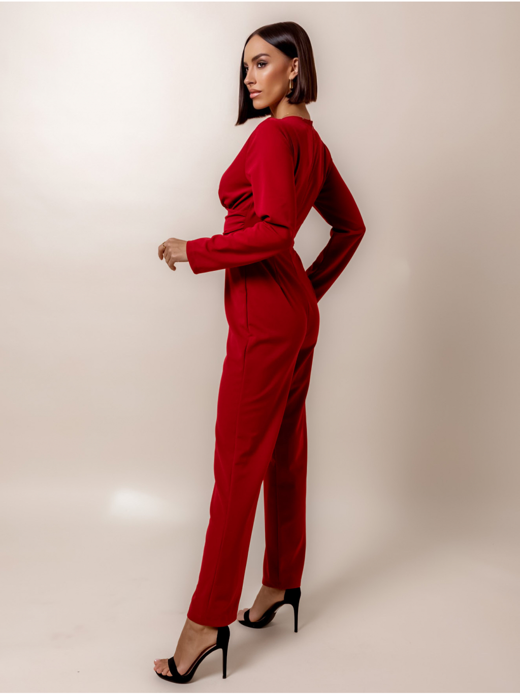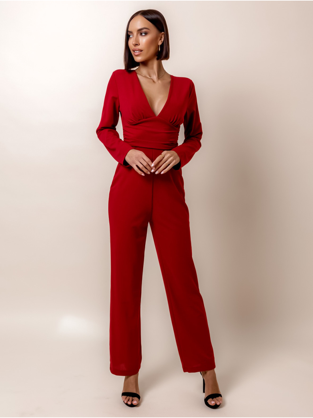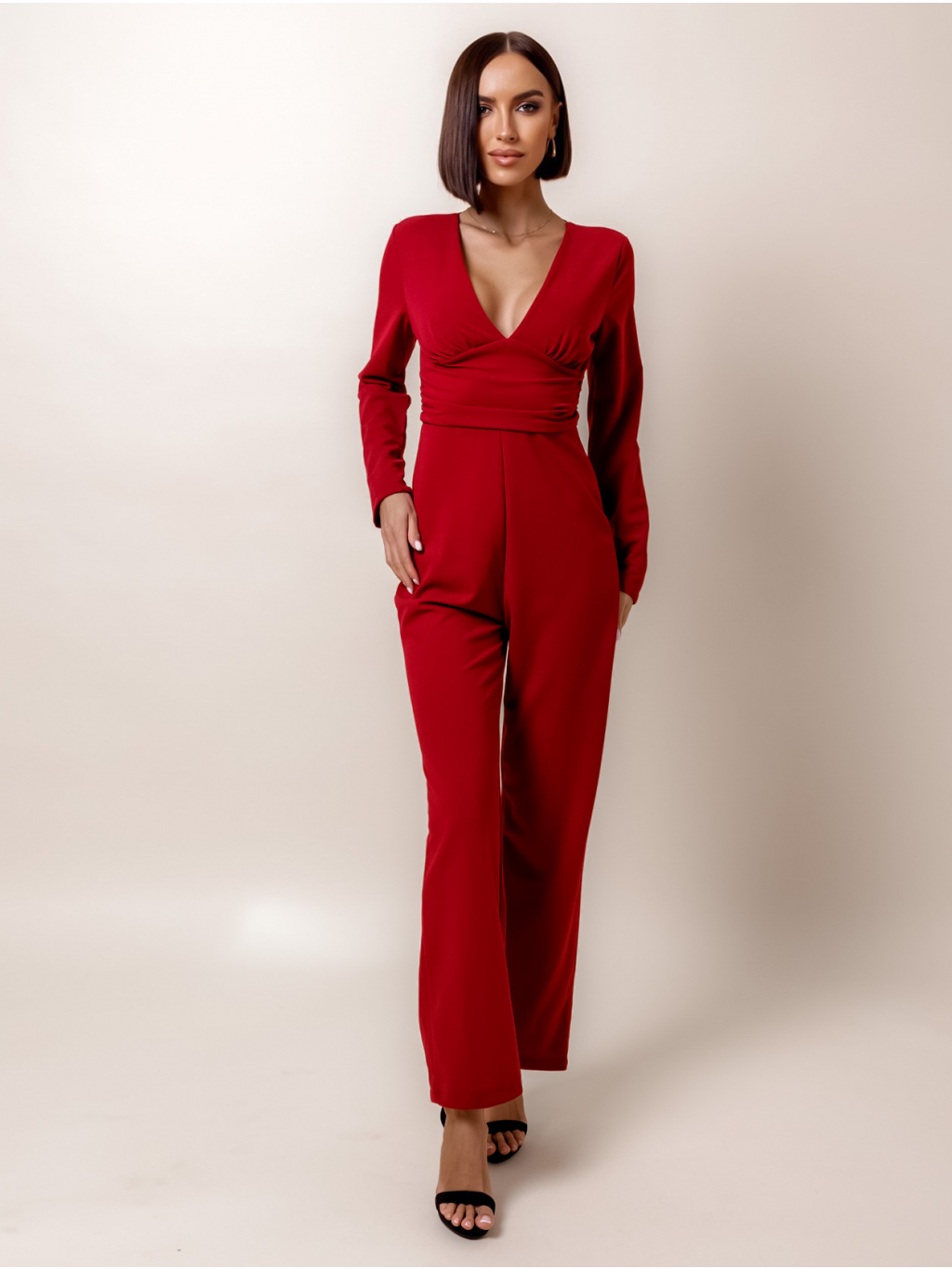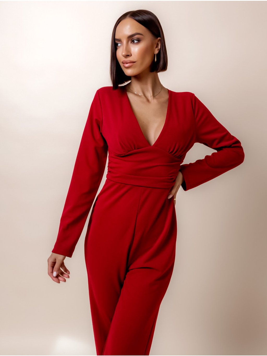 Bordó elegantní overal HARTLEYS s výstřihem do V