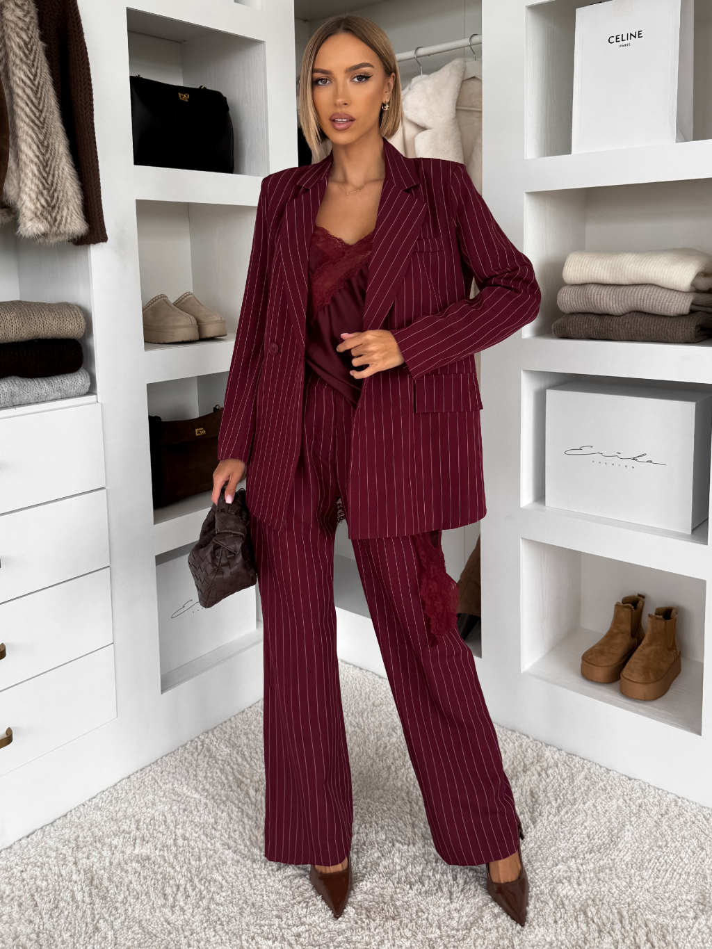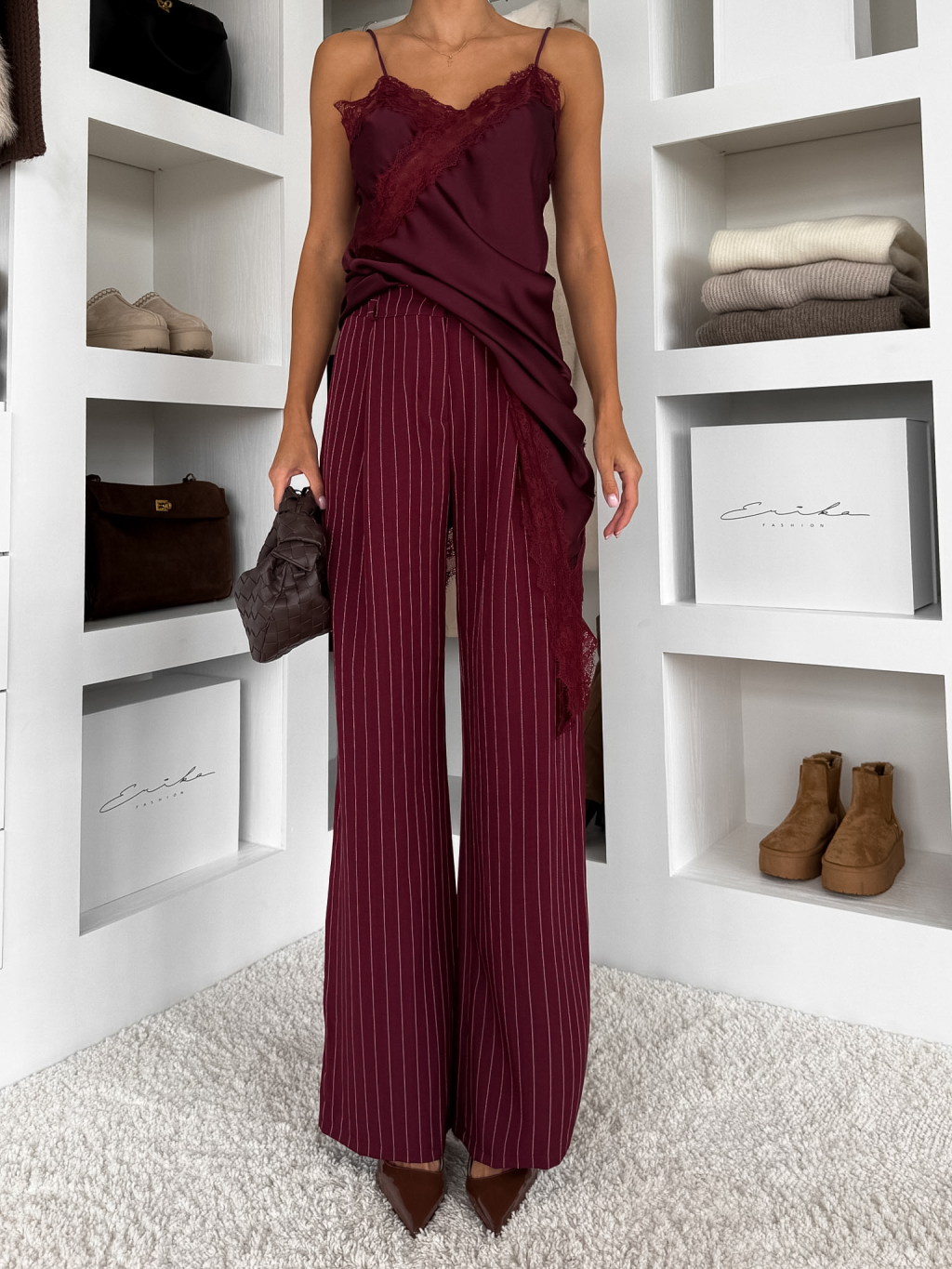 Bordó elegantní pruhované dlouhé kalhoty TRENAVI